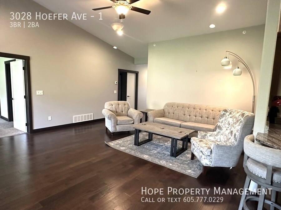 Beautiful Twin Home for Rent - This fantastic zero entry twin home in a quiet southeast Rapid City neighborhood offers three bedrooms, two bathrooms, and a spacious open-concept living area. The home features hardwood floors throughout the living area, gas fireplace, a kitchen with granite countertops and bar seating, and a formal dining space. The master bedroom includes a walk-in closet and ensuite with tiled shower and double vanity. Two additional bedrooms—one with double doors and hardwood floors—share a full bathroom with tub. There's a laundry room with washer, dryer, and pantry off the oversized two-car garage. Lawn care is provided; tenants cover utilities and internet. NO PETS. Residents are automatically enrolled in the Resident Benefits Package at $36.95/month, including $100,000 liability insurance, credit building, up to $1M identity theft protection, HVAC filter delivery (where applicable), a rewards program, and more. Details available upon application.