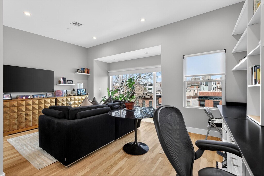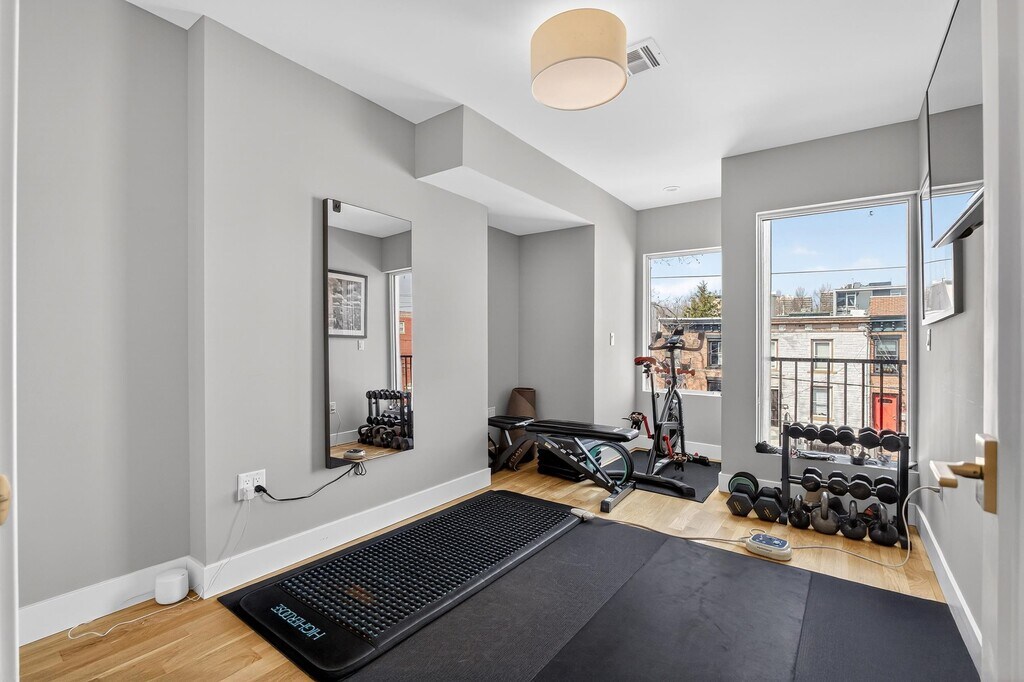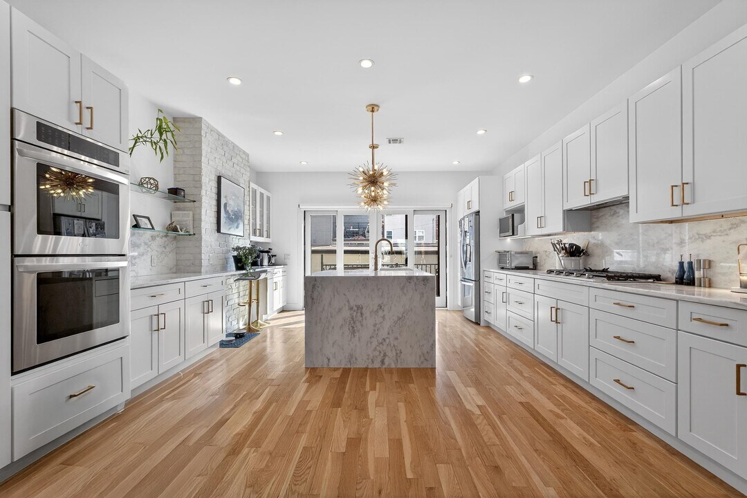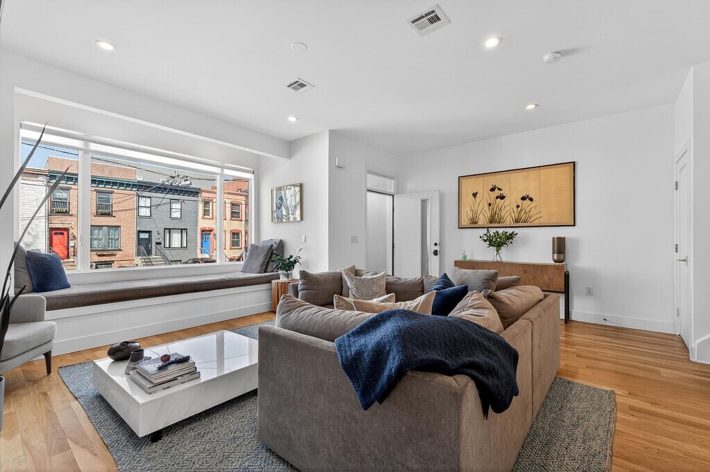 Experience modern luxury living in the heart of Downtown Jersey City with this fully renovated triplex apartment that truly has it all. This spacious home welcomes you with an open-concept first floor featuring a bright and airy living and dining area, highlighted by oversized windows that flood the space with natural light. The kitchen flows seamlessly to a private deck—perfect for grilling, entertaining, or simply relaxing outdoors. A convenient half bath completes this level. The second floor offers a thoughtfully designed layout with two well-sized bedrooms, a full bathroom, and a third bedroom with its own ensuite. This level also includes a dedicated laundry room equipped with a full-size washer and dryer, plus a utility sink for added convenience. On the top floor, you’ll find an expansive primary suite that feels like a private retreat. Enjoy a secondary living area or home office, generous his-and-her closets, and a stunning spa-like bathroom featuring both a soaking tub and a separate shower. Additional highlights include central air conditioning, a private garage with ample space for parking and storage, and electric vehicle charging access. The backyard connects directly to the garage, adding ease and functionality to everyday living. Ideally located just moments from parks, the PATH station, and a vibrant mix of shops, dining, and entertainment, this home offers the perfect blend of comfort, convenience, and style. This property has everything you need—schedule your private showing today.