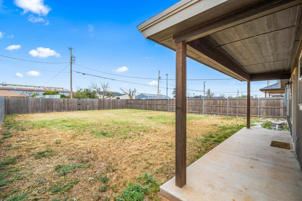 New Construction in Abernathy,TX. Beautiful home at a great value! The interior of this newly-built home features vaulted ceilings,wooden blinds,and luxury vinyl flooring throughout. The kitchen has a full suite of matching appliances,granite countertops,and an attached dining area. Exterior features include a covered patio,large backyard,and off-street parking. Don't miss your opportunity to make this house your home! This home is available for a 12 month lease. Vacant properties are held no more than 15 days with a deposit. NO SIGHT UNSEEN LEASING.