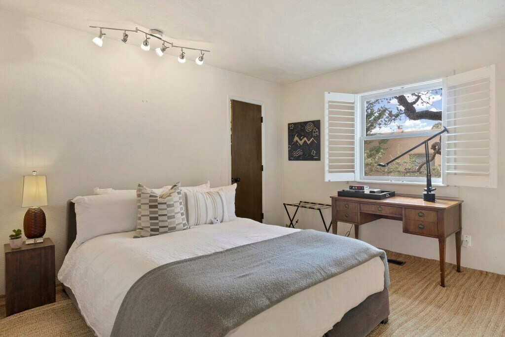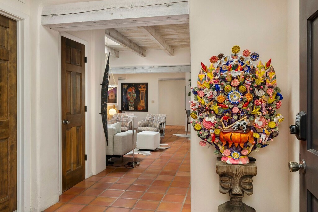 $3,800/month - 3 Bed | 2 Bathroom | 1 Car Garage ideally located within a one mile walk to the Plaza. The home offers 2,004 square feet of living space with three bedrooms, including one that is especially well suited for use as an office, and two bedrooms featuring walk in closets. There are two bathrooms, along with convenient pocket doors in two of the bedrooms and the hallway bathroom. The living area features an updated fireplace designed for easy use and maintenance, complete with glass coverings for enjoying the fire. Skylights throughout the living room, dining room, kitchen, and entryway bring in abundant natural light, complemented by light colored pickled ceiling beams that enhance the airy feel of the home. With an eastern orientation, the home is filled with natural light and offers lovely scenic views throughout the day. Outdoor living is equally inviting with a front patio that includes a new deck and portal. A second indoor outdoor space features a hot tub along with a small enclosed storage area, offering flexibility for relaxation and organization. Saltillo tile flooring runs throughout the home, including the kitchen, bathrooms, entry, and hallways, with soft carpeting in two of the bedrooms for added comfort. The enclosed garage is equipped with lighting, electrical outlets, and direct access into the house. Air Conditioning Heating Hot Tub Offered Lease Only through Casas de Santa Fe $3,800/month + Utilities One Year Lease Required Application Costs $35.00 Per Signatory First Month, Last Month, and Security Deposit Required Tenants Transfer All Relevant Utilities Into Their Name