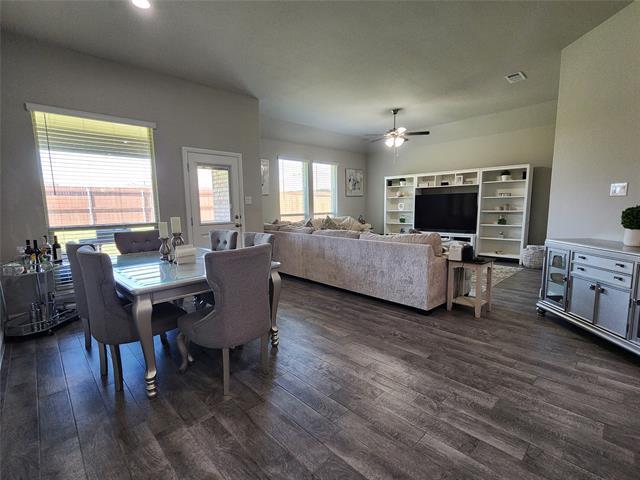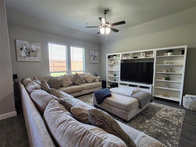 You will love the open floor layout for all your day-to-day living needs. The floorplan gives you options for an office, a guest bedroom, or a separate game room. The kitchen is gorgeous with a big island, sleek shaker cabinets, and pendant lighting. The main bathroom is complete with dual sinks, a split shower and tub, and a giant walk in closet. The shaded back patio is perfect for relaxing and grilling, plus the large fenced backyard has so many useful purposes. Enjoy the extra space of a third car garage. The community offers exlusive parks, splash pad, basketball court, dog park, and running trails and have multiple community events every year. This rental comes with a fridge, washer, and a dryer. Schedule your showing today to see all the details that won't fit in this description!