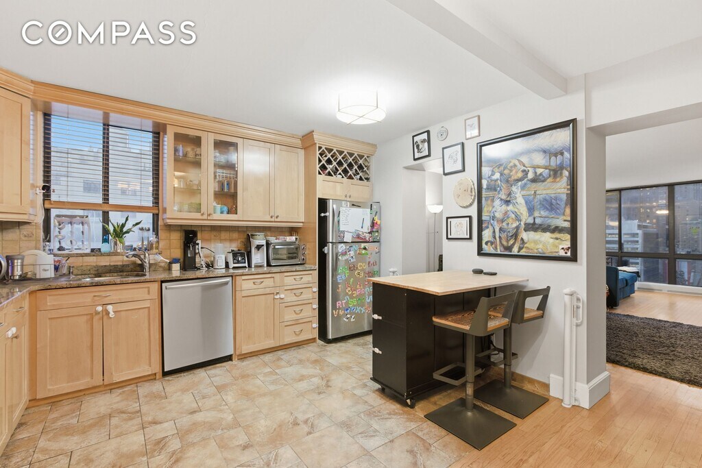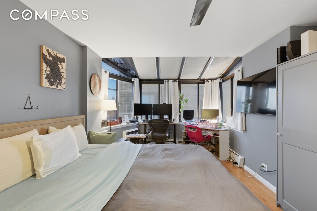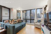 LIVE IN THE HEART OF TURTLE BAY Move right into this rare, sun-drenched full-floor residence with a keyed elevator that opens directly into the apartment. This expansive 2-bedroom, 2-bath home offers exceptional privacy, generous proportions, and abundant natural light throughout. The apartment features soaring ceilings, white oak hardwood floors, and an impressive curved wall of windows with southern, western, and northern exposures. The open, windowed chef’s kitchen is outfitted with custom cabinetry, tiled countertops and floors, a dishwasher, and ample storage. Additional highlights include a Bosch washer and dryer, extensive closet space, and both a private porch and balcony. The king-sized primary bedroom boasts a large custom-built closet, en-suite bath, and oversized greenhouse-style windows with southeastern exposure. Both all-white bathrooms are finished with glass tile accents and custom vanities. Peregrine Tower, originally built in 1983 and thoughtfully renovated in 2014, is a full-service luxury condominium offering a 24-hour doorman and private storage. Perfectly situated in Turtle Bay, the building is surrounded by top dining, shopping, schools, museums, fitness centers, parks, and more. Grand Central Terminal, Metro-North, and the 4, 5, 6, 7, M, and E trains are all just moments away, ensuring effortless commuting. Private showings available seven days a week by appointment.