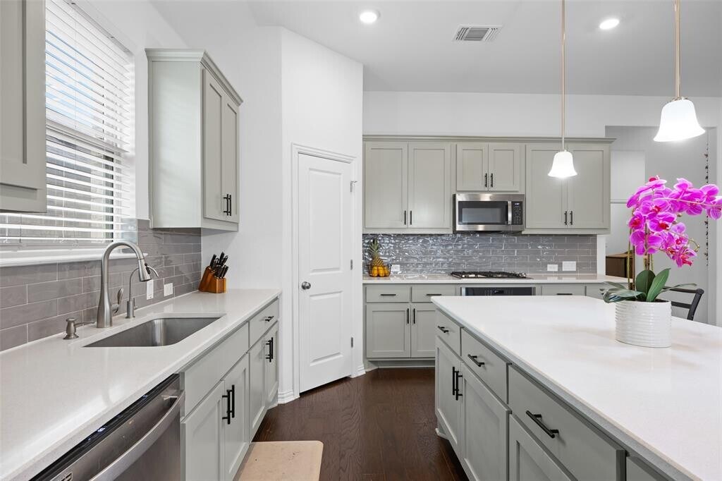 Beautiful two-story single family home with extended entry leading to open family room, kitchen and dining room with cathedral ceilings and vinyl wood flooring. Functional kitchen with ample cabinet and counter space, includes stainless steel appliances, subway tile, island with built-in seating space, refrigerator, and reverse osmosis water system. Separate laundry room includes washer and dryer. Stairs, game room and 4 bedrooms are carpeted. Upstairs bedroom is an in-law arrangement with full bath and walk-in closet. See floor plan. Office and 3 full plus 2 half baths are tiled. Exterior features include covered back patio, private backyard, irrigation system, water softener, and EV charging port. Fantastic community amenities! Jack Hays, Laura Wallace and Laura Negley schools. Located near shopping, dining, and parks. Convenient access to IH-35 for commuting to Austin or San Marcos. Tenants responsible for utilities, salt for water softener, and yard maintenance. No smoking. Tenants to verify schools, square footage, and all information. To review our Screening Criteria, Pet Screening, and apply, go to Administration Fee: $100 Pet Deposit: $300 per pet Pet Rent: $20/mo per pet 2 pets max - call agent to discuss. All residents are enrolled in the Resident Benefit Package (RBP) at $35 which includes our utility and maintenance reduction program, utility concierge service, home buyer program, and more! MLS ID 8392171