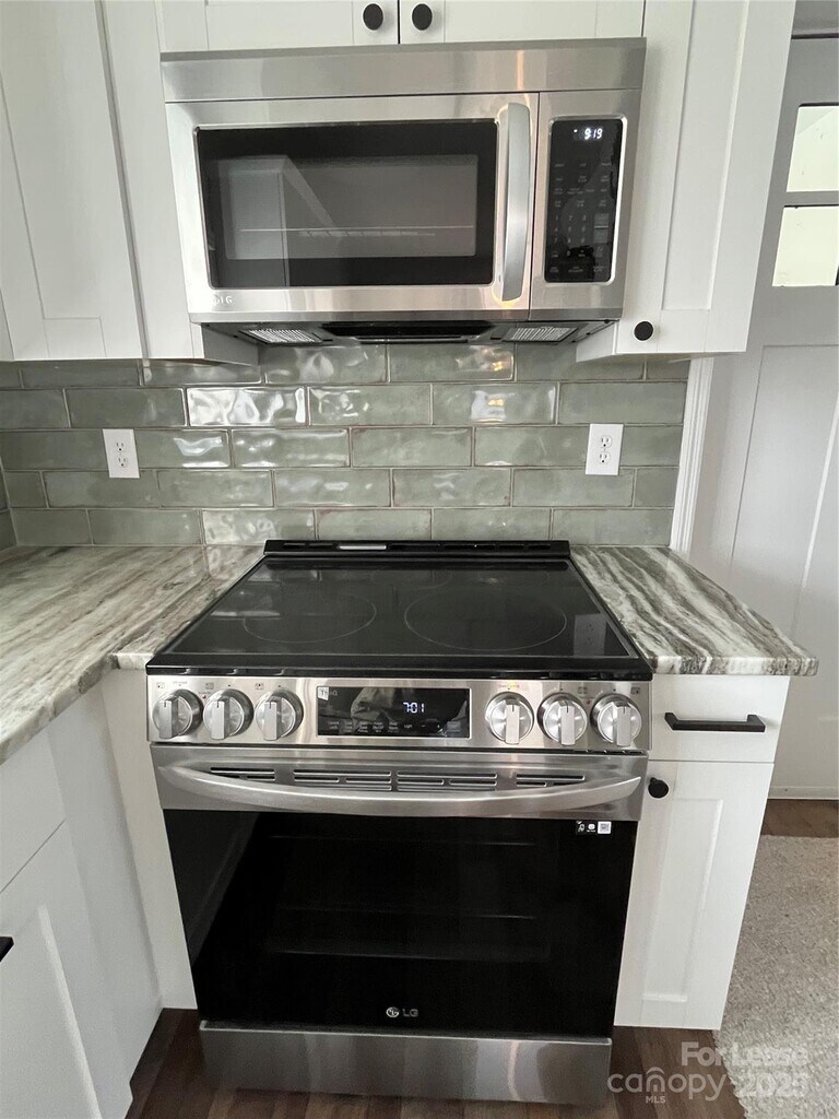 This 1500+ sq ft,3-bedroom duplex unit is available for rent in West Asheville,offering convenient access to amenities along Patton Avenue and Haywood Road,with downtown Asheville just a 10-minute drive. The property features mature trees and an established garden with existing plants like raspberries and tomatoes. This is a Two-story unit with an open floor plan on the main level. Kitchen equipped with stone countertops,a tile backsplash,and stainless steel LG appliances,including a dishwasher,convection/air fry electric oven,and a filtered water tap at the kitchen sink overlooking the backyard. Washer and dryer located on second floor where bedrooms are located.