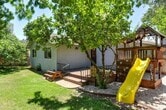 Beautifully updated 1981 built 1536sf Skyridge home in South Auburn with 2 car (484sf) garage with opener, Close to everything, nearby Skyridge Elementary School district, parks and fairgrounds, shops & restaurants of historic Old Town & Downtown Auburn. Engineered hardwood, tile, vinyl and new carpet flooring, contemporary remodeled kitchen with granite countertops and island, soft-close cabinetry, dishwasher, garbage disposal, built-in microwave, gas range, refrigerator (AS IS). Plantation shutters & expansive windows bathe this home in natural light. Neutral, soft paint accents. Central heat & air plus ceiling fans, energy efficient leased solar array, whole house fan & fireplace insert for year round comfort and savings. Fully landscaped front and back yards with deck and automatic sprinkler systems and play structure offers plenty of room for outdoor enjoyment, tool shed and basic yard maintenance included. Enjoy the seasonal bounty mature fruit trees (fig and lemon) and your own garden with raised planters. Inside laundry with washer and dryer (both AS-IS) (220 or gas hookups). NO SMOKING / NO PETS. Security Deposit equal to rent. All adults planning to live in unit must apply separately. Application processing fee is $40.00 each and is non-refundable. Applicants must provide proof of gross income at least three times (3x) the rent. CHECK OUT KEYS with cash deposit and photo ID M-F 9am-4pm. Must be returned before 5:00PM. Office is closed weekends and holidays other than by specific appt.