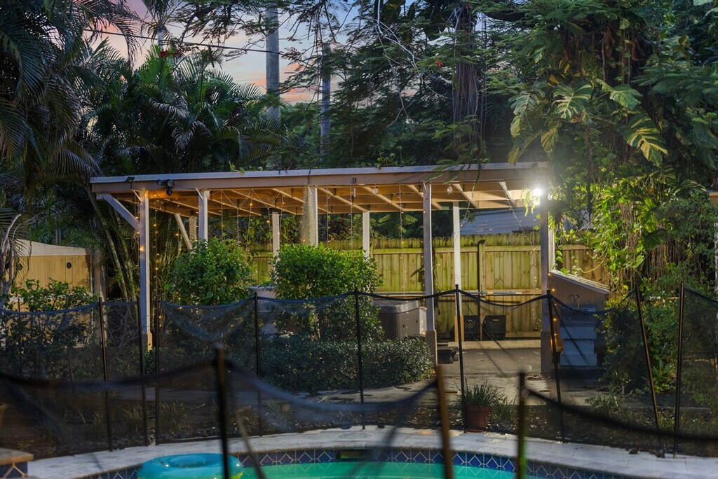 The advertised rate of $33,591/month is the lowest available price, based on a 1 month(s) stay with a move-in date of April 27, 2026. Rates vary depending on the duration of stay, season, and other parameters. For exact pricing and additional pricing components, please visit our website and enter your desired move-in and move-out dates. The rate is applicable when billed upfront; it can be higher if billed in multiple payments. Feel at home in this rare two-home retreat designed for large groups in a peaceful residential area near West Palm Beach and Lake Clarke Shores. This spacious and comfortable property is built for groups to relax, connect, and make unforgettable memories. This ultimate large-group retreat features two homes with expansive outdoor areas, lake views, and game rooms. The main house (~2,100 sq ft) has spacious, open living areas and a fully stocked kitchen. The second home (~840 sq ft) offers direct easy access to the pool and second hot tub, along with kitchenette access. Both homes include fully equipped kitchens with a full-size refrigerator, oven and stove, cookware and utensils, oil, salt, pepper, basic spices, blender and toaster, plates, mugs, glassware, and filtered water. Each full bathroom includes fresh towels, shampoo, conditioner, body wash, toilet paper, and a hair dryer. Enjoy the heated pool, two hot tubs, fire pit lounge, lakefront deck and wildlife viewing, hammock relaxation, grill and outdoor dining. Indoor entertainment options include multiple game rooms, a pool table, ping-pong, foosball, smart TVs, board games, and children’s play areas. Parking is available for approximately nine vehicles. Located in a peaceful residential area near West Palm Beach and Lake Clarke Shores, this home offers a quiet atmosphere while still being close to restaurants, shopping, and the city’s waterfront attractions. The property sits on a lakefront lot with beautiful water views, providing a peaceful retreat while still being close to the energy of downtown West Palm Beach. Drive Shack is 5 minutes away, The Square is 8 minutes away, Cox Science Center is 8 minutes away, Clematis Street is 11 minutes away, Palm Beach Zoo is 10 minutes away, Norton Museum is 12 minutes away, Okeeheelee Park is 13 minutes away, Palm Beach / Flagler Beaches are 15 minutes away and PBI Airport is 15 minutes away. Supermarkets and shopping are nearby, including Publix Super Market at Southdale Shopping Center (1.0 miles), Winn-Dixie (3.3 miles), Walmart Supercenter (3.7 miles), ALDI (3.8 miles), Target (4.3 miles), Whole Foods Market (4.4 miles), Brothers Farmers Market (4.5 miles), Tanger Outlets Palm Beach (4.6 miles), and Vinh Hung Oriental Market (5.5 miles). Restaurants and bars are also close by, including Cholo Soy Cocina (1.5 miles), Souvlaki Grill (2.0 miles), Table 26 Palm Beach (2.9 miles), 215 Speakeasy (3.3 miles), Darbster Vegan Restaurant (3.4 miles), IL Bellagio Italian Restaurant (3.8 miles), The Blind Monk (4.2 miles), O'Sheas Irish Pub (4.2 miles), Kapow Noodle Bar (4.3 miles), Okeechobee Steak House (4.4 miles), Your Greek Cousin (4.5 miles), Leila Restaurant (4.5 miles), Aroma Indian Restaurant (5.1 miles), Malakor Thai Café (5.8 miles), and Agora Mediterranean Kitchen (5.8 miles). The twin bed and trundle are 5 ft in length and more suitable for a child than an adult. Florida’s tropical climate can occasionally invite small bugs, especially during the warmer months or after rain. It is located on a lake and near an airport, so there will be noise of planes taking off. No pets and no smoking are allowed. Registration Number: 000027470, [SI]