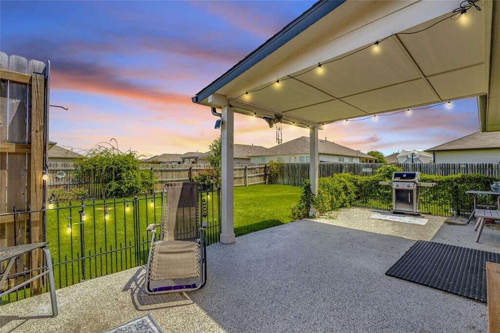 Pristine, move-in ready home full of upgrades. Stellar curb appeal with large covered front porch is just the beginning of this special property. 1 year old Vinyl plank flooring through the functional floorplan. Open living room to kitchen with granite counters, stainless steel appliances, subway tile backsplash, and kitchen island. *Washer, Dryer, and Refrigerator INCLUDED! 4 year old water softener! Upgraded epoxy speckle on expanded and covered back patio and garage flooring. What an incredible backyard! Backs the side of a neighbor's house creating great privacy - electric and privacy wall for a hot tub already installed! Beautiful vine growing on half fence with a well-landscaped, large lot. 4 bedrooms or 3 bed + office with closet. Across the street from HOA park! Hutto Elementary right outside the neighborhood. Close to Downtown Hutto with Lamppost Coffee, Happy Panini, several food trucks, Mario's Mexican Restaurant, Texan Cafe, Hall of Fame Diner, Hutto Wine Bar and annual events like Hutto Olde Tyme Days and Hutto Crawfish Festivals!