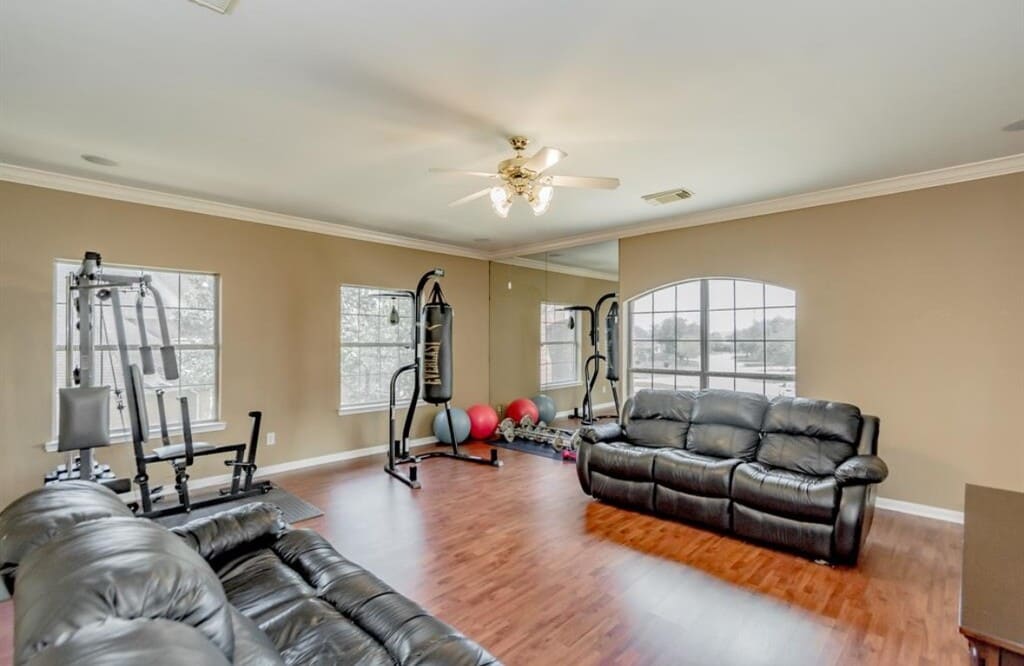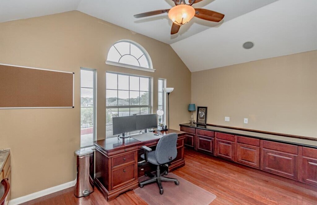 Waterfront stunner with pool in golf course community! This 5BR/3.5BA home sits on a manicured cul-de-sac lot and features wood floors,built-ins,new carpet,and a chef’s kitchen with island and double ovens. The resort-style backyard boasts a pool,tropical landscaping,covered patio,water views,and a gas generator. Spacious primary suite with fireplace and spa-like bath. Game room + oversized bedrooms. Luxury,comfort,and location—don’t miss it. Pool maintenance + yard maintenance included in this price. MLS# 75097642