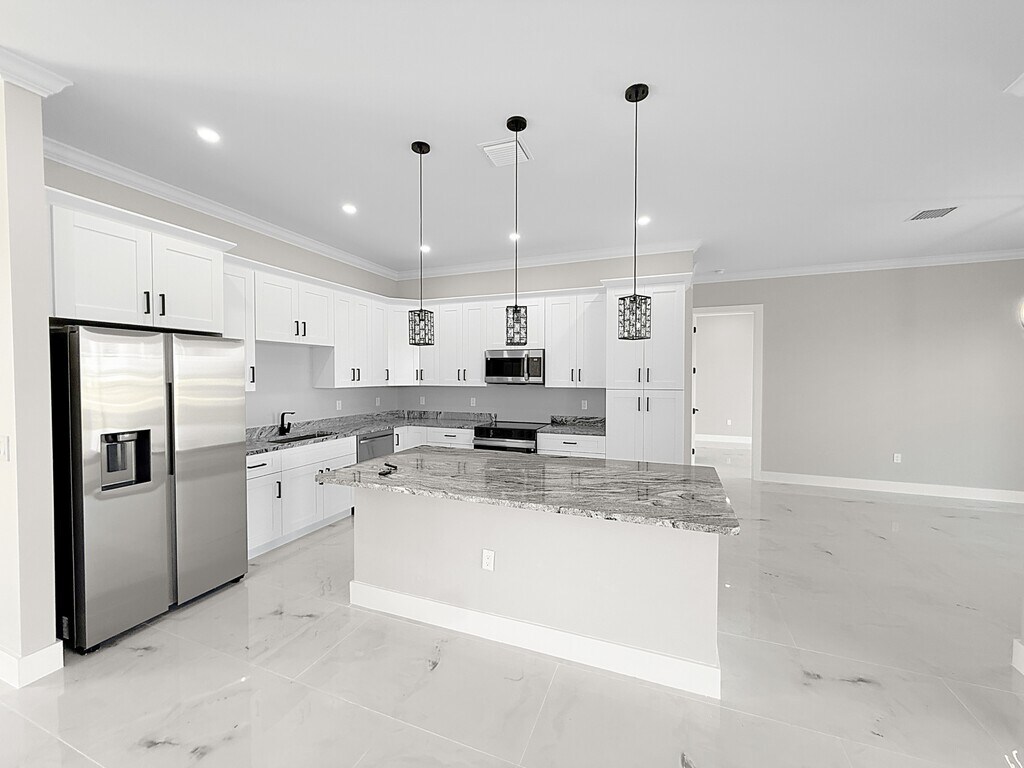 Be the first to live in this brand-new construction 3 bedroom, 3 bathroom home featuring high ceilings and oversized doors for a bright, modern, luxury feel. This beautifully designed property offers an open-concept layout with spacious living areas, abundant natural light, and high-end finishes throughout. The tall ceilings and grand doorways create an airy, upscale atmosphere that truly sets this home apart. Each bedroom is generously sized, and with three full bathrooms, this home is perfect for families, professionals, or roommates seeking comfort and privacy. The kitchen flows seamlessly into the main living space—ideal for entertaining or everyday living. Located in a quiet Cape Coral neighborhood close to shopping, dining, schools, and major routes. Need to make at least 3 times the monthly rent in income. Need copy of ID and proof of income. Last 4-6 weeks of paystubs.