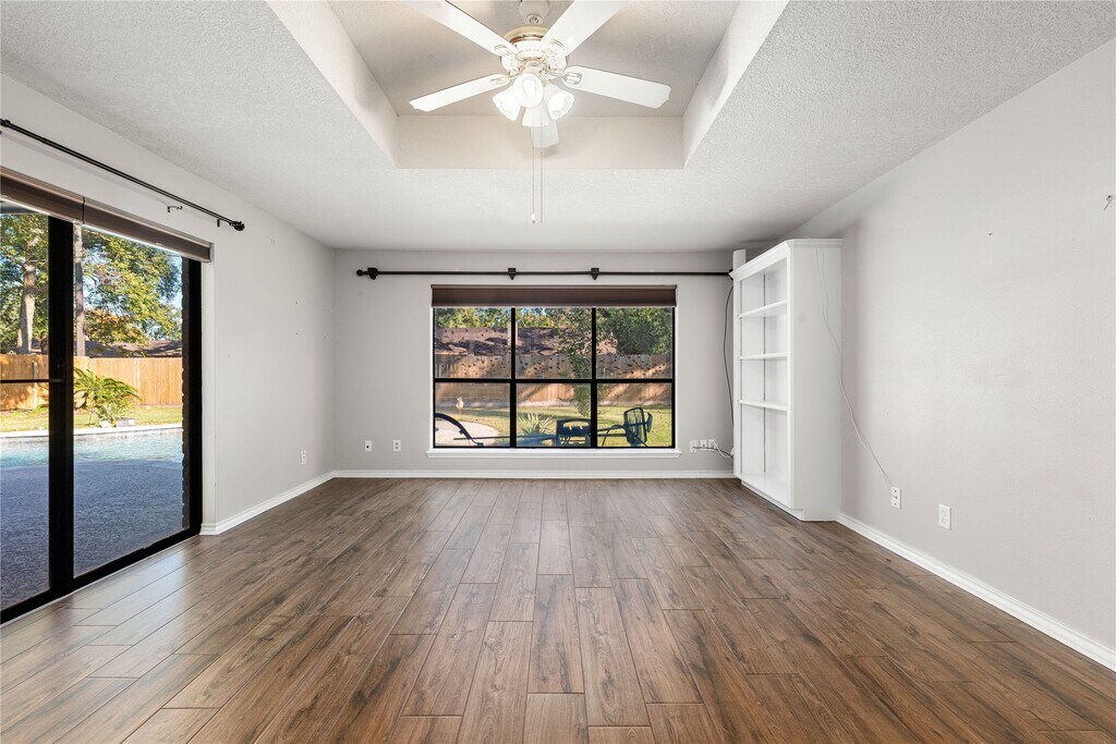 If you’re looking for a home with plenty of space,both inside and out,you’ve found it. This 3-bedroom,2-bath ranch-style home sits in the heart of Lake Jackson and offers a layout ideal for everyday living and entertaining. You’re welcomed by a large foyer that opens into a spacious family room featuring a cozy gas-log fireplace and beautiful views of the privacy-fenced backyard. The open floorplan flows into the kitchen and dining area,complete with granite countertops and tile backsplash. Sliding doors from the dining area lead to a side patio overlooking a tranquil pond,previously used for koi,perfect for enjoying your morning coffee. Out back,a covered patio overlooks the nearly 4-year-old in-ground pool,creating a true backyard retreat. Additional features include wood-look tile flooring,remodeled showers,a roof replaced in March 2025,central vacuum extending to the garage,water softener,intercom system,and a two-car garage with a double-wide driveway. MLS# 796298