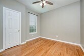 Beautifully maintained single-story home with numerous upgrades. Renovations completed by June 2024 include new wood floors throughout, fresh paint, and a new AC unit. The kitchen, bathrooms, and utility room feature ceramic tile. The open kitchen flows into the den, and the home comes with a refrigerator, washer, and dryer. Enjoy a cozy fireplace and the convenience of being within walking distance to the community pool.