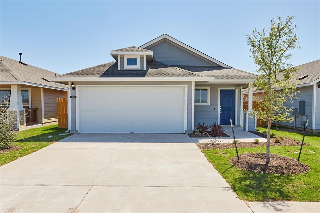 Nestled at 303 Trailside LN in Bastrop, TX 78602, a meticulously maintained single family residence. The expansive open floor plan invites residents into a comfortable living space, where the living room is distinguished by a striking vaulted ceiling, creating an airy and welcoming atmosphere for daily living. Culinary creativity finds its canvas within a thoughtfully appointed kitchen, showcasing elegant stone countertops perfectly complemented by a sophisticated backsplash. Shaker cabinets provide ample storage, while a versatile kitchen bar and a functional kitchen peninsula offer convenient spaces for meal preparation and casual gatherings. Three well-proportioned bedrooms offer peaceful sanctuaries for rest and rejuvenation, with one featuring the practical luxury of a spacious walk-in closet. The two full bathrooms are designed for comfort and ease, including one equipped with a convenient double vanity. Outdoor enjoyment awaits with a charming porch at the front of the home, while a private patio extends an invitation to relax within the confines of a securely fenced backyard. Essential conveniences are further provided by a dedicated laundry room and two generous garage spaces, accommodating practical needs with ease. This exceptional property, thoughtfully designed and meticulously maintained, offers a harmonious blend of modern comforts and practical amenities for an enviable living experience. Great location! Easy access to Hwy 71. Located less than 24 miles from ABIA and the Tesla Giga factory. Easy access to tons of shopping including Walmart Super center, Best Buy, Academy, Home Depot, HEB Plus, and tons of great restaurants. The home has never been lived in. Stainless steel fridge will be included! IS A REQUIRED PART OF THE APPLICATION PROCESS FOR ALL APPLICANTS MLS ID 5366980