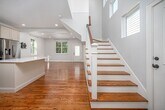 Ask me about 1 month free rent. Available Immediately. Like New 3 Bedroom 2 Bath Home with Fenced Yard. This beautiful home is light and bright and waiting for you to move in. Hardwood floors gleam in the Living Room and Kitchen. Kitchen features plentiful storage with upgraded shaker cabinets, stainless steel appliances and a center island with quartz counters. Primary Bedroom located on the first floor. Primary Bath has walk in shower. Two large bedrooms on the second floor with a hall bath between them. The yard has a shared fence with the house next door, raised garden beds, and a lovely shaded patio. Washer/Dryer. Shared Driveway. Pets negotiable with fees. Your new home is waiting for you. Contact us to schedule a showing.