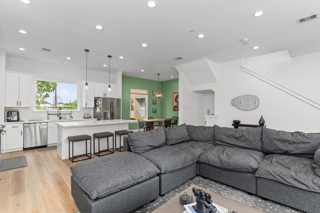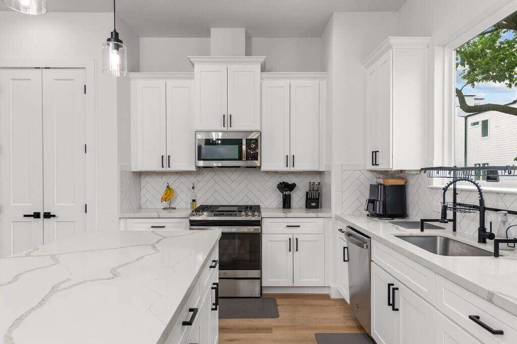 Welcome home to this stunning 3-story residence tucked inside a GATED community just minutes from Midtown and Downtown Houston! This thoughtfully designed floor plan features 3 bedrooms and 3.5 baths,offering both style and functionality. Step inside to discover soaring ceilings,neutral tones,and walls of windows that flood the space with NATURAL LIGHT. The open-concept second floor is perfect for entertaining,with a chef-inspired kitchen boasting stainless steel appliances. Enjoy indoor-outdoor living with a COVERED BALCONY,ideal for relaxing year-round. Retreat to the private third-floor primary suite,complete with oversized windows,a walk-in closet,and a spa-like ensuite with a soaking tub,upgraded double vanity,and separate shower. The first and third-floor secondary bedrooms each come with private ensuite bathrooms,offering comfort and privacy. Washer,Dryer & Refrigerator INCLUDED! Schedule your showing today! MLS# 24912575