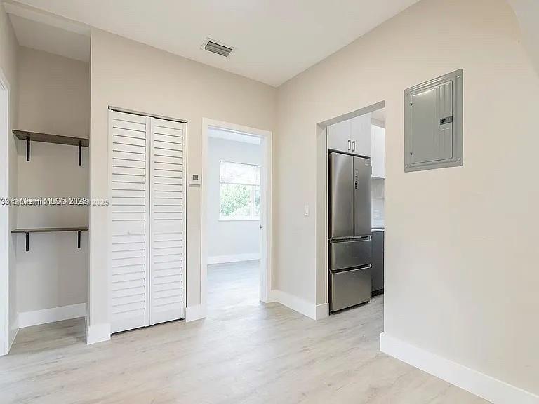 Now available for rent a fully renovated 3-bed, 1-bath second-floor unit with brand-new plumbing, electrical, ACs, roof, impact windows/doors, kitchen with stainless steel appliances, new flooring, and modern finishes. Includes two parking spaces and access to a separate laundry area with new washer, dryer, and utility sink. Located on an oversized lot with shaded areas and mature fruit trees (mango, avocado, lime, orange), just blocks from the future Miami Freedom Park stadium and minutes from the airport, hospitals, Downtown, Brickell, and Miami Beach. A turnkey rental in a fast-growing area. No HOA approval required so you can move in immediately! Call today for showing!
