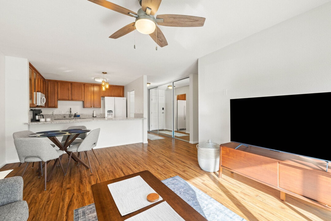 Feel at home in this fully upgraded 2-bedroom, 2-bath condo in the heart of Northpark, one of San Diego’s most vibrant and walkable neighborhoods. This corner-unit gem is in impeccable condition, with thoughtful upgrades throughout, including brand new vinyl plank flooring and upgraded brand new appliances. The kitchen is fully stocked for easy meals at home with a Keurig coffee maker, coffee pot, tea, utensils, cookware, glassware, microwave, stove, oven, refrigerator, freezer, and dishwasher. Three powerful mini-split a/c and heaters keep every room cool and comfortable. Enjoy blazing-fast Gigabit Wi-Fi and a Smart TV for entertainment. Laundry is available in the building. Designated on-site parking is available. Pool, gym, sauna, and an outdoor grilling area are available as community amenities. Local meal prep companies, baby gear, a beach wagon, and rental cars are available through preferred providers once booked. For monthly stays, there is a Utility Cap of $200; guests will be responsible for any overages. Pet are welcome with a fee of $100 per pet per month. Suncrest Condo is located in a quiet, well-maintained building but just steps away from the energy of Adams Avenue, filled with cozy coffee shops, local eats, and indie boutiques. Transit is available within a few blocks. Quiet hours are from 10 p.m. to 9 a.m. Smoking indoors will incur a $500 charge. Undeclared guests will be charged $100 per person per night if not disclosed. Tampering with any Wi-Fi, outdoor security cams, locks, etc., will incur a $100 fee. Unlawful use of our home (illegal activities or substances, etc.) incurs a $500 fee per instance. Please ensure pets do not do their business inside the home (no pee pads on floors!), please clean up after pet hair, and do not let pet hair go down shower drains if you bathe them, it will clog our pipes! Includes Blazing-fast Gigabit Wi-Fi for remote productivity. [SI]