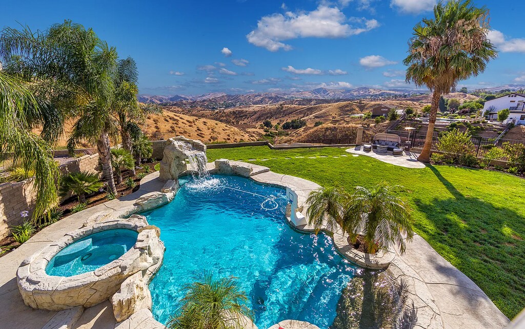 Welcome to this extraordinary 5-bedroom, 4.5-bathroom estate nestled in the peaceful cul-de-sac of Mallorca Place in Castaic, CA. Spanning 3,875 sq. ft., this home is the perfect blend of luxury, comfort, and privacy. Living Spaces: Step inside to a spacious, open floor plan featuring a separate family room, formal dining room, and central air conditioning for year-round comfort. Vaulted ceilings, recessed lighting, and a cozy fireplace add warmth and elegance to the living areas. The stairs are carpeted, while the rest of the home is adorned with stunning wood-look ceramic tile and wood flooring. Gourmet Kitchen: The remodeled kitchen is a chef's dream, complete with black granite countertops, stainless steel appliances, and an island that opens into the family room. Perfect for family gatherings or entertaining guests, this kitchen is both functional and stylish. Bedrooms and Bathrooms: Upstairs, the primary suite offers a private balcony and a spacious walk-in closet. Downstairs, a full bedroom and bathroom provide convenience for guests or multi-generational living. Each room is thoughtfully designed, with custom built-in bookcases and soft water plumbing throughout the home. Outdoor Oasis: Step outside to find a true entertainer’s paradise. The backyard features a covered patio, outdoor BBQ area, fire pit, and a private pool/spa surrounded by lush landscaping and fruit trees. Solar panels ensure reduced electricity bills, and an EV charger, dog run, and RV parking cater to modern needs. Additional Features: The home includes a four-car garage with storage cabinets, a water softener system, and all appliances such as the refrigerator, washer, dryer, and dishwasher. Pool/spa and gardener services are included, offering a hassle-free living experience. Don't miss out on this dream rental! Available now, contact at for more details and to apply. - IMPORTANT NOTES: Visit the page on our website "Renting a Property" for a detailed explanation of our application and approval process. Please review our Pet Policy for associated fees and requirements. More details here: At California Leasing, we strive to provide an experience that is cost-effective and convenient. That’s why we provide a Resident Benefits Package (RBP) to address common headaches for our residents. Our program handles insurance, air filter changes, utility set up, credit reporting, rewards and more at a rate of $50.95/month, added to every property as a required program. More details upon application. Most California Leasing homes come with high speed internet up to 1 Gig at a special group rate of $70.00, with premium support and setup powered by Second Nature to get you connected fast at move-in. Check your lease to see if your home is included in the program.