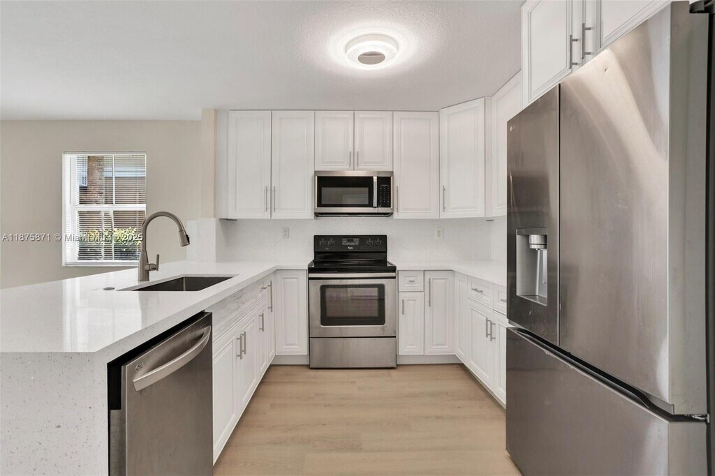 Beautifully updated 2-story corner unit in a gated Miramar community! Features brand-new scratch & water-resistant vinyl floors throughout, quartz countertops, new wood cabinets, SS appliances, and fully renovated bathrooms plus a convenient powder room downstairs. Bright and full of natural light with direct garden access, new HVAC system, hurricane panels, and professionally cleaned for immediate move-in. Ideally located with easy access to I-75 & Turnpike, near shopping, dining, and in a vibrant, family-friendly neighborhood at the Broward/Miami-Dade border.