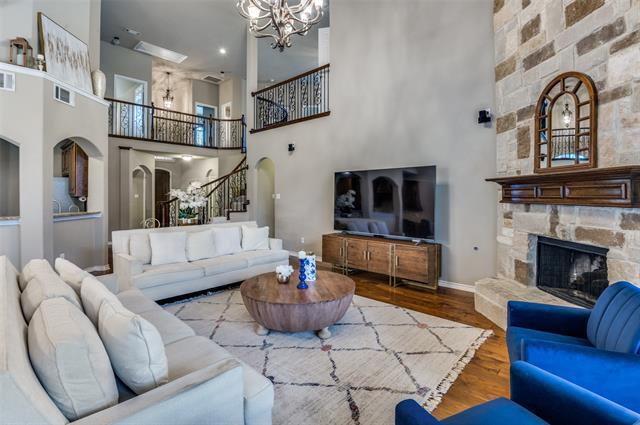 This spectacular home has the WOW factor. Beautifully appointed rich, Hard wood flooring downstairs, wrought iron circular staircase and arches. Very open floor plan with a lot of windows to brighten the space. Grand stone fireplace with gas starter. The master bedroom is a real retreat, with sitting area, bath with jet tub, separate shower, walk in closet and split vanities. Game room and a separate media room up for added value and pleasure. MISD. Close to Joe Pool Lake for water recreation. Shopping near-by and easy freeway access. It couldn't get any better. Study down could double as 6th bedroom if needed. Perfect home for your family