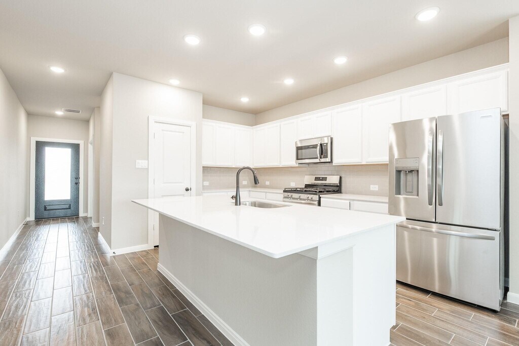 **Ready to move in** Stunning NEW CONSTRUCTION. Exceptionally versatile interior layout offering 4 Bedrooms,2.5 Baths,and a Multi-Purpose home office/study/5th Bedroom. Spacious open-concept living area,and created to maximize height,light & space. Open concept island kitchen features a one-piece genuine Stainless Steel Kitchen sink,elegant Quartz countertops,and a walk-in pantry. Private primary bedroom with wall of windows. French doors lead to dual vanities,a garden tub,a separate glass-enclosed shower,and a walk-in closet in the primary bath. Secondary bedrooms all offer a walk-in closet. Beautiful tiles through the entry,dining,kitchen,family room,wet areas,and carpet throughout the bedrooms. Utility room just off the two-car garage. Convenient to I-10 and The Grand Parkway. **Please take off your shoes when entering the house. MLS# 62282644