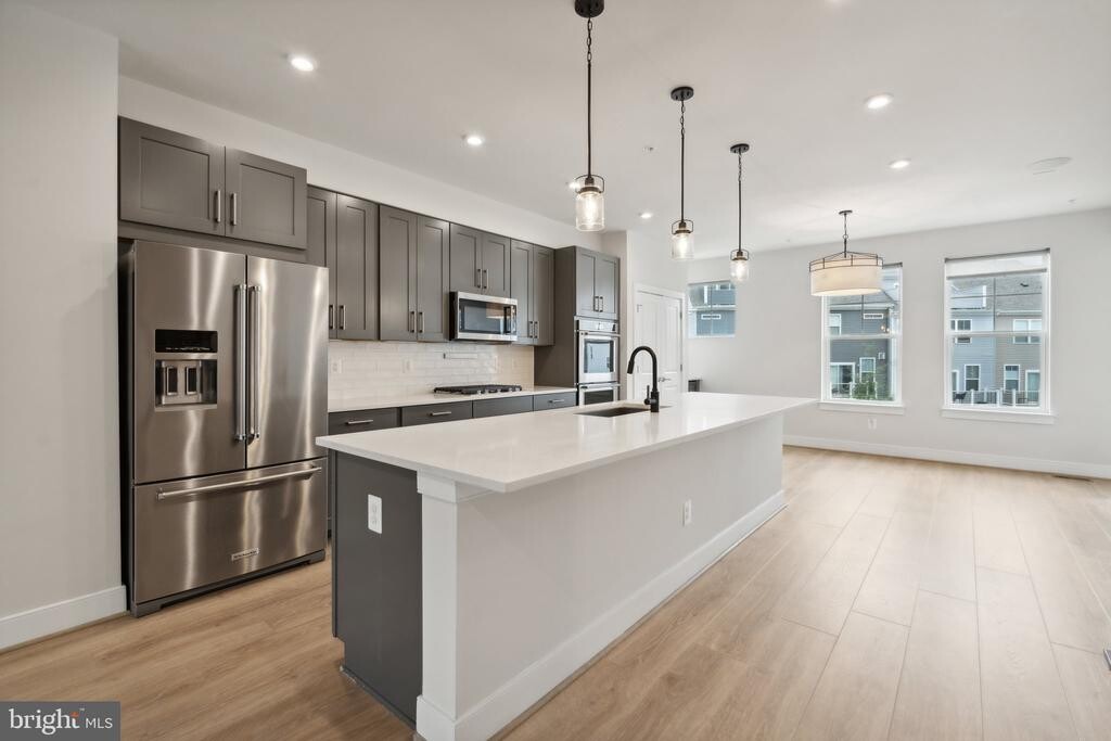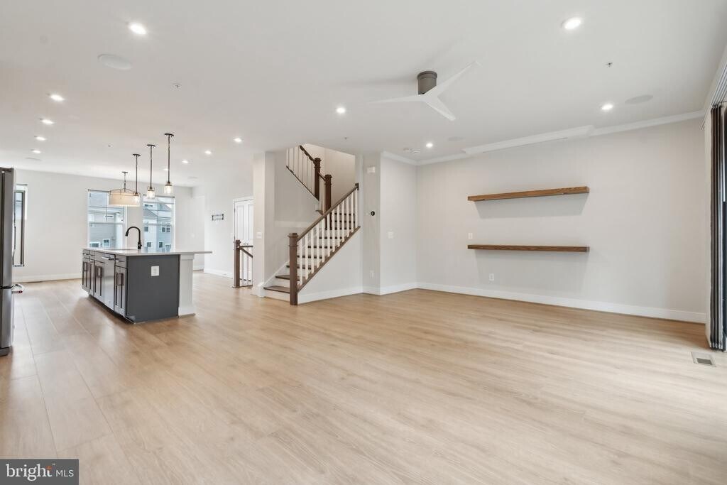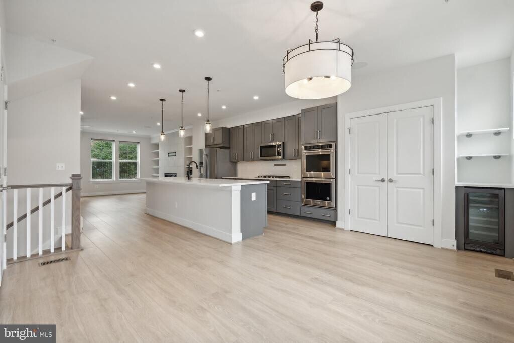 This beautifully upgraded contemporary townhome offers refined living across four thoughtfully designed levels in a highly accessible Falls Church location. Featuring 4 spacious bedrooms, 3 full bathrooms, and 2 half baths, the home showcases an open floor plan with premium finishes throughout, including custom built-ins, recessed lighting, luxury blackout window treatments, and a striking electric fireplace that anchors the main living area. The gourmet kitchen is designed for both daily living and entertaining, complete with a large center island, high-end cabinetry, stainless steel appliances, double ovens, gas cooking, and a custom wine bar with dedicated storage. Designed with comfort and versatility in mind, the upper levels include generously sized bedrooms, walk-in closets, and a rooftop flex space that sets this home apart. The rooftop retreat features a built-in sauna and wet bar, opening to a private deck with peaceful views—ideal for relaxing or hosting guests. Additional highlights include two outdoor decks, a custom mudroom for organized storage, and a fully finished lower level with direct garage access. A two-car attached garage adds everyday convenience. Located just minutes from major commuter routes, shopping, dining, and business hubs, this home provides easy access to Tysons, Arlington, and Washington, DC while remaining tucked within a modern residential community. With public utilities, central air, natural gas heating, and online application availability, 3034 Declan Way delivers an exceptional blend of luxury, functionality, and accessibility—perfect for those seeking a move-in-ready home in a prime Northern Virginia location.