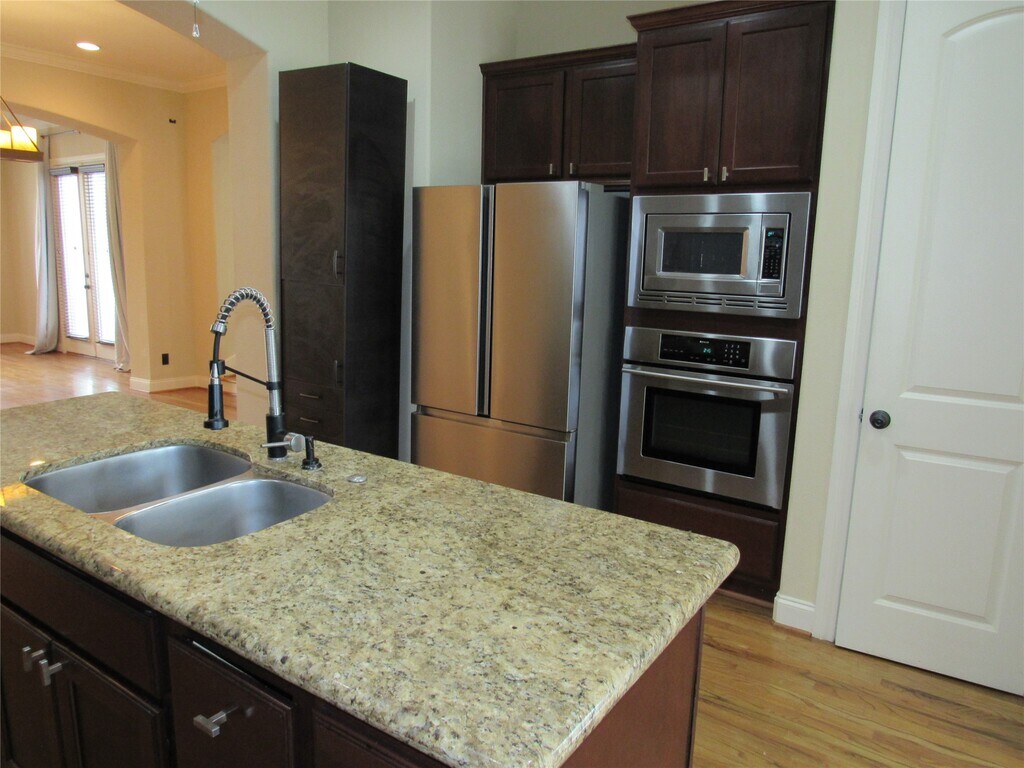 Spacious 3 story home nestled in a quaint,gated enclave right in the city. Generously sized bedrooms each with an ensuite baths and walk-in closets. No carpet anywhere,high ceilings throughout,and so many windows! Bright and lovely entryway with marble floors. First floor bedroom has access to covered patio and astroturf yard on one of the largest lots in the subdivision. Second floor features a living room with gas log fireplace and Juliet balcony,and hardwood floors waiting for your personal touches. Separate dining area perfect for gatherings. Kitchen features granite countertops,stainless steel appliances,Jenn Air 5 burner gas cooktop,built-in oven and microwave and a walk-in pantry. Sip your morning coffee on the balcony,have a meal,or catch up on work at the built-in desk right in the breakfast room. Bonus space on the second floor is a great spot for a reading nook or your favorite plants. Minutes from NRG,The Galleria,shopping and restaurants! MLS# 97455022