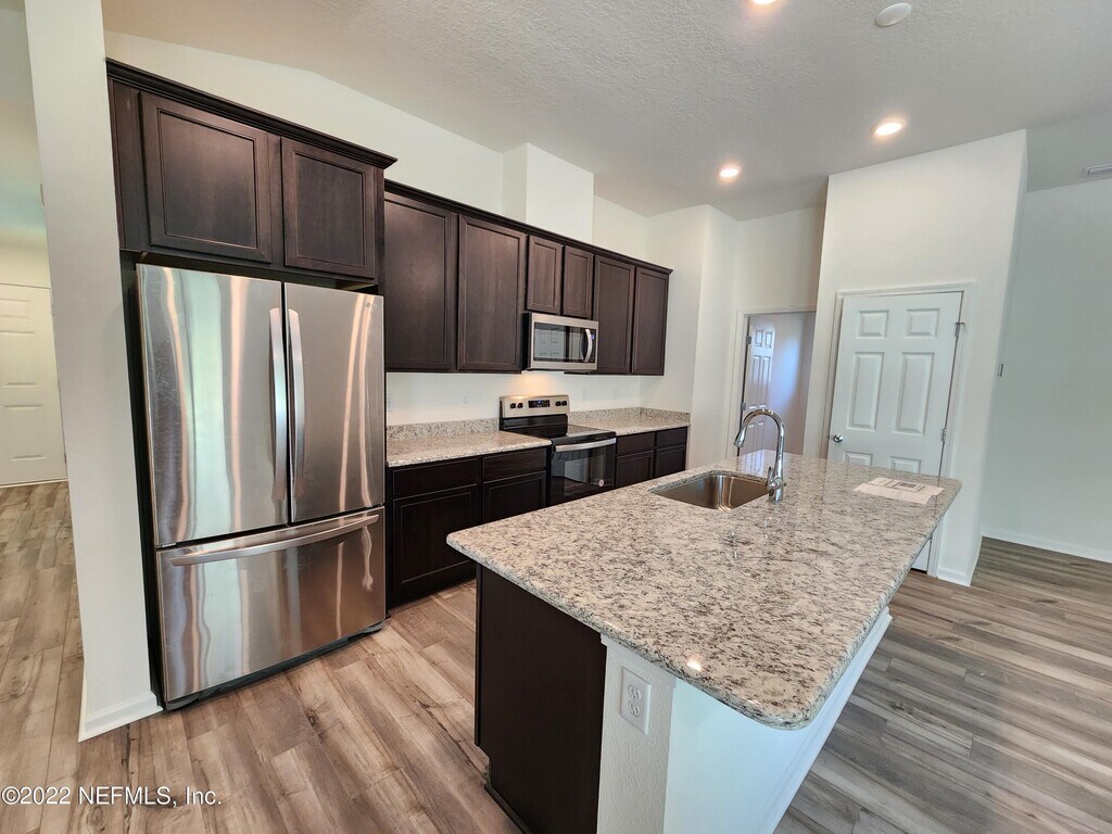 MOVE IN READY! Great Location! 100% ENERGY STAR CERTIFIED HOME! 4 bedrooms and 2 full bathrooms features large living/kitchen/dining combo. Large Kitchen Island with Granite countertop and 42'' cabinet. New Luxury Vinyl Plank flooring throughout the house and carpet for all bedrooms. All Kitchen Appliances are brand new and included with washer and dryer. Beautiful backyard pond view with very quiet area and corner street away from main road. Convenient location nearby Walmart,Sam's Club,Costco,Orange Park Mall,NAS JAX and etc. Don't let this slip away,it won't last long. MLS# 2126784