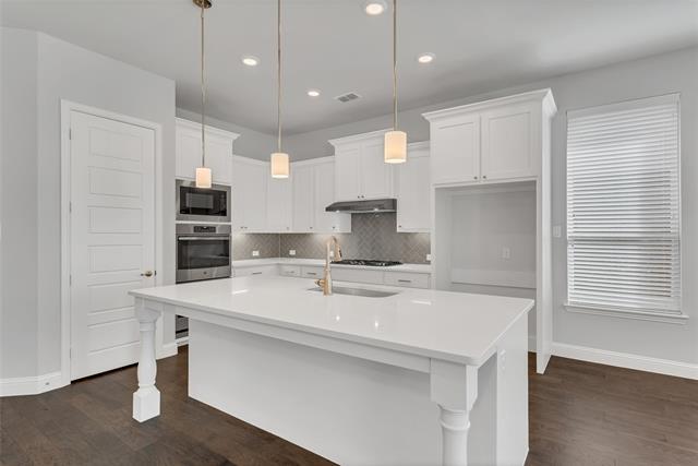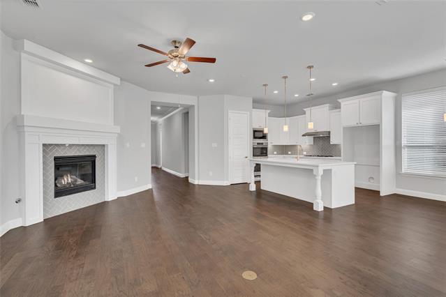 2 WEEKS FREE RENT WITH ACCEPTABLE LEASE. Amazing KHOV home ready immediately with over $37000 in upgrades Located in sought after Mustang Lakes with TOTAL FRONT YARD MAINTENANCE, pool, club house, tennis & PROSPER ISD. This 4 bedrm 3 bath home offers tons of upgrades to include upgraded wood floors throughout, high end newly installed carpet, upgraded tile baths, kitchen with huge pantry, double stainless ovens, quartz countertops, gas cooktop, large island & upgraded cabinets. Recently repainted throughout and decorated in soft grey and white tones this home offers French doors on the study, large open entry with upgraded glass front door and high ceilings. An oversized family room with upgraded tiled craftsman fireplace overlooks a covered patio and good size backyard.