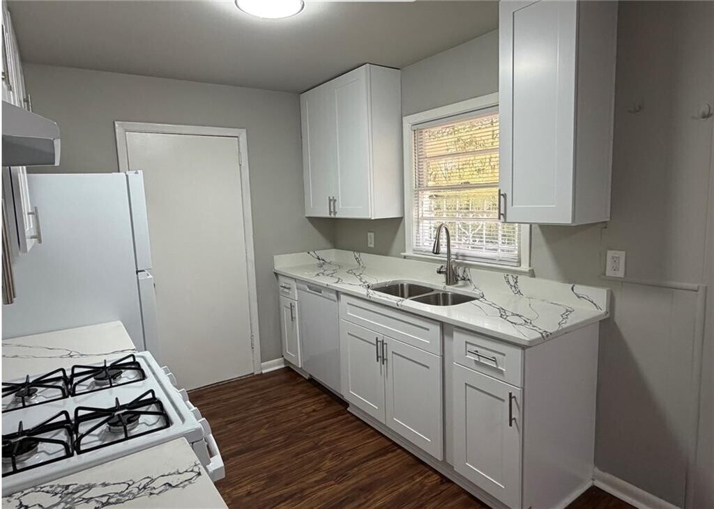 FOR LEASE: This freshly updated 1960's ranch offers comfortable living and modern touches with 4 bedrooms, 1.5 baths. The home features newly refinished hardwood floors, fresh interior paint, and a brand-new kitchen with new appliances and crisp white cabinets and high-end white quartz countertops providing a fresh modern finish. The vintage-tiled bathrooms retain their classic charm, complemented by new sinks and vanities. The 4th bedroom off the kitchen features exposed brick walls and a durable epoxy-finished floor, perfect for an in-home gym, workspace, den or guest area. The exterior is of the home is inviting with shutters and freshly painted brick. Enjoy a spacious, fenced backyard that is level and ideal for pets, play, or gardening. Located in the established Gresham Park neighborhood. "The Path" is accessed at the end of the street for beautiful nature walks, bike rides or serious work-outs. It can take you to Stone Mountain or to downtown Atanta where you can hook up to the Beltline. Several parks are nearby and accessed from "The Path". This home is move-in ready and waiting for its next chapter. Sorry no AHA Vouchers/Section 8.