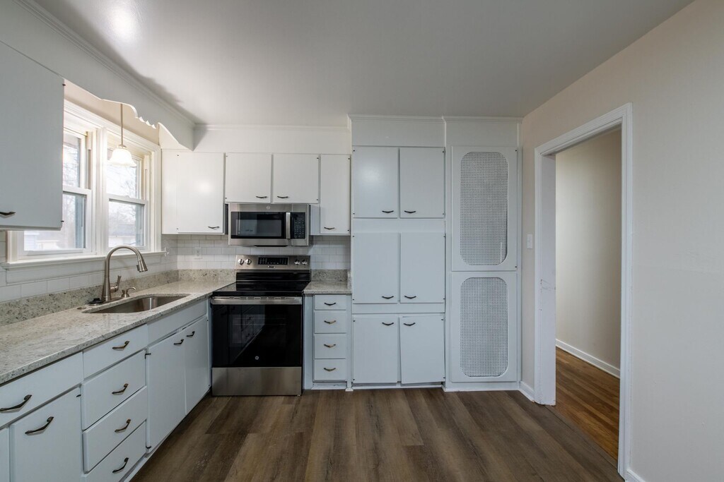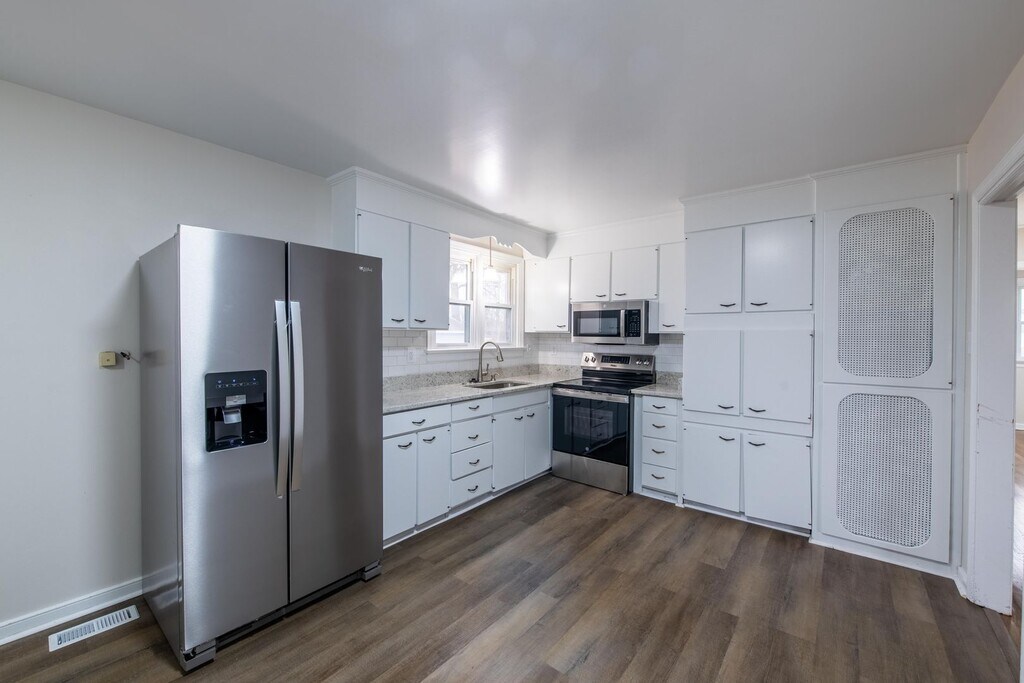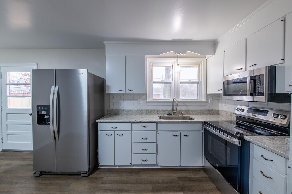 Welcome to your new home! This adorable 3 bedroom, 1 bathroom brick ranch-style home features beautiful refurnished hardwood floors, new flooring in kitchen and bathroom, and fresh paint. The kitchen includes brand new appliances and granite countertops, with a laundry area attached (washer and dryer also included). The bathroom is remodeled with new tile, toilet and vanity. Don't forget to check out the huge fenced-in backyard with shed. This home is move-in ready with a new roof and HVAC!
