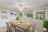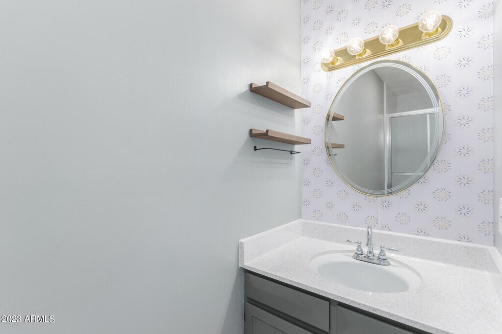 Fantastic opportunity to live in a unique 3-bedroom,2.5-bathroom home in the heart of Tempe! With over 1,860 sq ft,this residence offers a spacious haven. Large sliders in the living room flood the space with natural light showcasing the updated flooring,stylish panel wall,and modern features such as recessed lighting. The kitchen has been thoughtfully refreshed with new paint and hardware,flowing seamlessly into a formal dining area adorned with beautiful bay windows that provide a delightful view of the backyard. On the main floor you'll find 1 of the bedrooms that shares a convenient half bathroom with guests. Upstairs,the remaining 2 bedrooms and 2 full bathrooms offer comfort and privacy. One bedroom also has access to a cute balcony providing additional views of the (see more) stunning backyard and views of the golf course. The backyard creates a serene retreat for relaxation or entertaining with an extended patio,lush grass,and mature trees. Conveniently located near ASU Main Campus,Tempe Marketplace shopping,restaurants,and the 202 and 101 freeways,this home offers both unique living and easy access to everything Tempe has to offer. Landscaping services included.