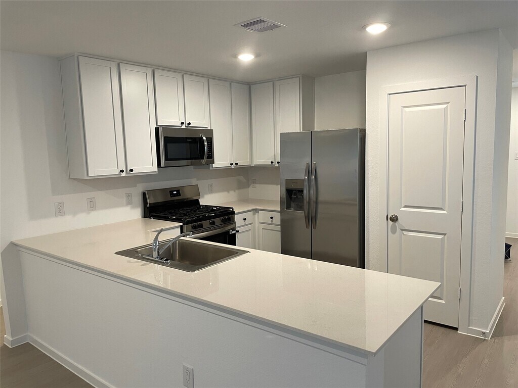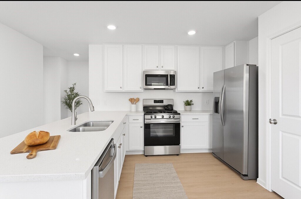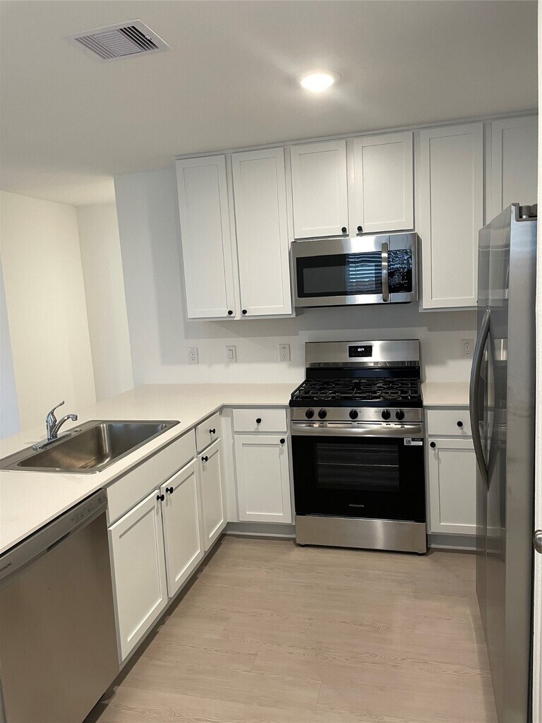Stands out from the rest. Brand-new,Stunning 1-story 3-bed 2-bath; Modern comfort and natural beauty just minutes from walk trail park shopping and dining. Step-into open-concept floorplan,spacious family room flow into elegant kitchen w/white shaker-style cabinets,gleam white quartz countertops; brand-new refrigerator,washer & dryer. Living area w/beautiful vinyl plank floor on warm inviting atmosphere. Retreat to private owner suite at rear of home with glass frameless shower enclosure,bath & ample walk-in closet. Two secondary well sized bedrooms,sharing second full bathroom. Premium upgrades set it apart: Smart AC clean air,tankless water heater,ceiling fans in bedrooms,window blinds,rain gutters and cedar stained fence. Two-car garage w/sleek epoxy finish w/baseboard. Outside good-sized 20 x 40' backyard providing private space with no direct back neighbors but a well-maintained utility easement. Yard maintenance included on rent,making it easier to enjoy your weekends. MLS# 74101952