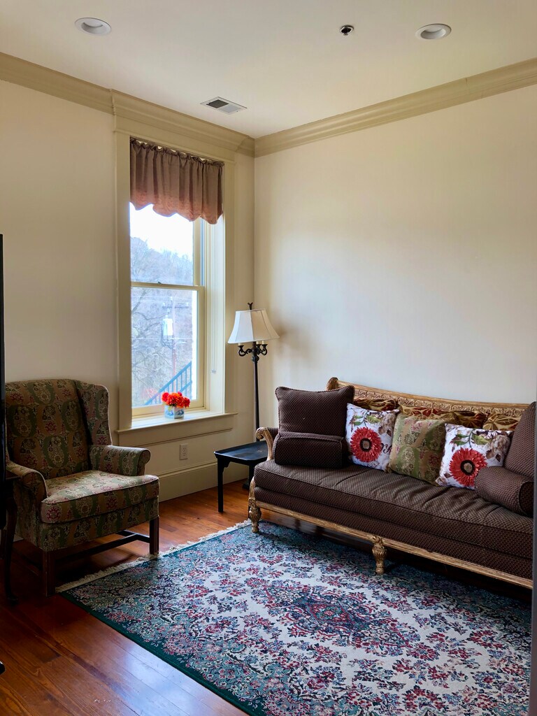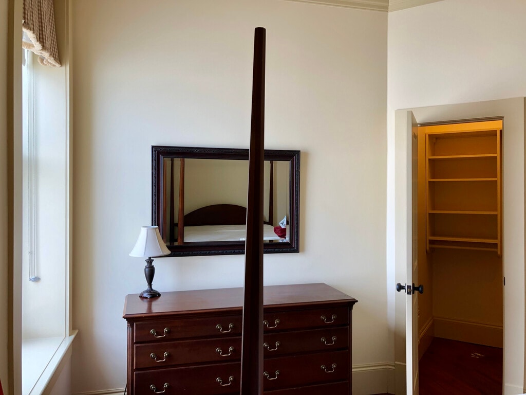 1 bedroom, 1 bath, kitchen, dining and living rooms. Stainless refrigerator, range/oven, dishwasher, microwave, disposal. Large walk-in closet in bedroom. Coat/storage closet in entryway. Tall ceilings and windows, hardwood floors and cabinetry, crown molding. Water/sewer and free WiFi included. Off street parking in private lot. Access controlled building. Contact us for more information.