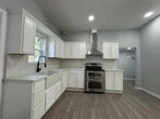 Lovely rental home in the heart of Shawnee,Oklahoma! This fully remodeled 2-bedroom,1-bath bungalow offers 974 sq ft of updated living. Inside,you’ll find new wood-look flooring,recessed lighting,and a bright,open feel. The kitchen stands out with white shaker cabinets,stone countertops,decorative backsplash,and a stainless-steel double oven with chimney hood. The bathroom has been refreshed with a walk-in shower and modern finishes,while both bedrooms include ceiling fans and generous closet space. Additional features include a dedicated laundry room with hookups,a covered front porch,an attached carport,and a fenced backyard. With its blend of comfort,function,and attention to detail,this home is ready for move-in and positioned close to local shopping,schools,and easy highway access.