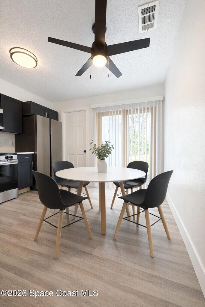 Welcome to this beautifully updated 2-bedroom,1-bath duplex for rent in Cocoa,offering modern finishes and a bright,open layout in a prime Brevard location. Step inside to discover brand-new vinyl plank flooring throughout and an open,spacious floor plan that feels both inviting and functional. The stunning kitchen is truly the heart of the home,featuring luxurious navy blue cabinetry,elegant quartz countertops,a stylish farmhouse sink,and brand-new stainless steel appliances perfect for everyday living and entertaining. The bathroom has been thoughtfully updated with a tub/shower combination,new vanity,modern mirror,and updated fixtures,creating a clean and contemporary feel. Ceiling fans throughout provide comfort and energy efficiency,while both bedrooms offer ample space and natural light. Centrally located in Brevard County,this property is just a short drive to the beach,Kennedy Space Center,and Eastern Florida State College! Move-in ready! MLS # 1069161