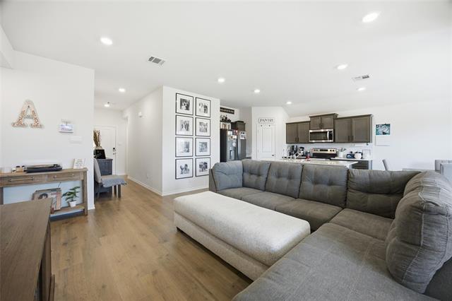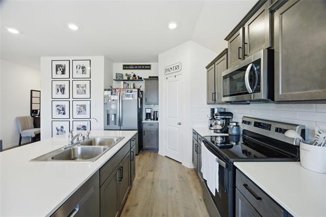 Welcome home! This beautiful, gently lived-in 3-bedroom, 2-bathroom home offers both comfort and style in a highly desirable location. The open concept layout features luxury vinyl flooring throughout the main living areas, creating a warm and inviting space perfect for everyday living and entertaining. The kitchen is designed to impress with quartz countertops, stainless steel appliances, and a spacious walk-in pantry, providing both functionality and modern appeal. The private primary suite serves as a relaxing retreat, complete with a large ensuite bathroom featuring dual vanities and a separate shower. Secondary bedrooms are cozy yet spacious and each include walk-in closets for ample storage. Step outside to enjoy the beautifully maintained yard with a full irrigation system. Residents will love the neighborhood amenities, including a community swimming pool, walking trails, and a playground. Conveniently located near shopping, dining, and everyday essentials, this home truly offers the perfect blend of comfort and convenience. Home comes with water softening system.