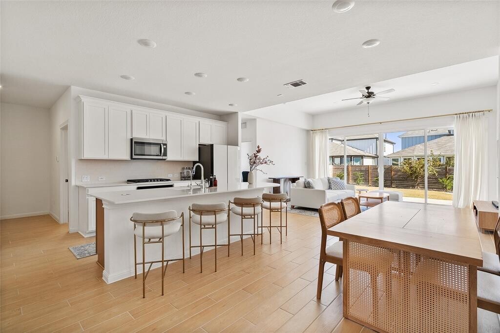 Beautiful This open concept floorplan boasts a spacious family room perfect for gatherings, a chef’s kitchen with a large center island and premium stainless appliances. The serene owner’s suite features a roomy closet and luxurious bath, while additional bedrooms are well-appointed for family or guests. Enjoy outdoor living with a extended patio and thoughtfully landscaped backyard. Located in top-rated Leander ISD. Quick access to North Austin and major roadways makes this the perfect family home.