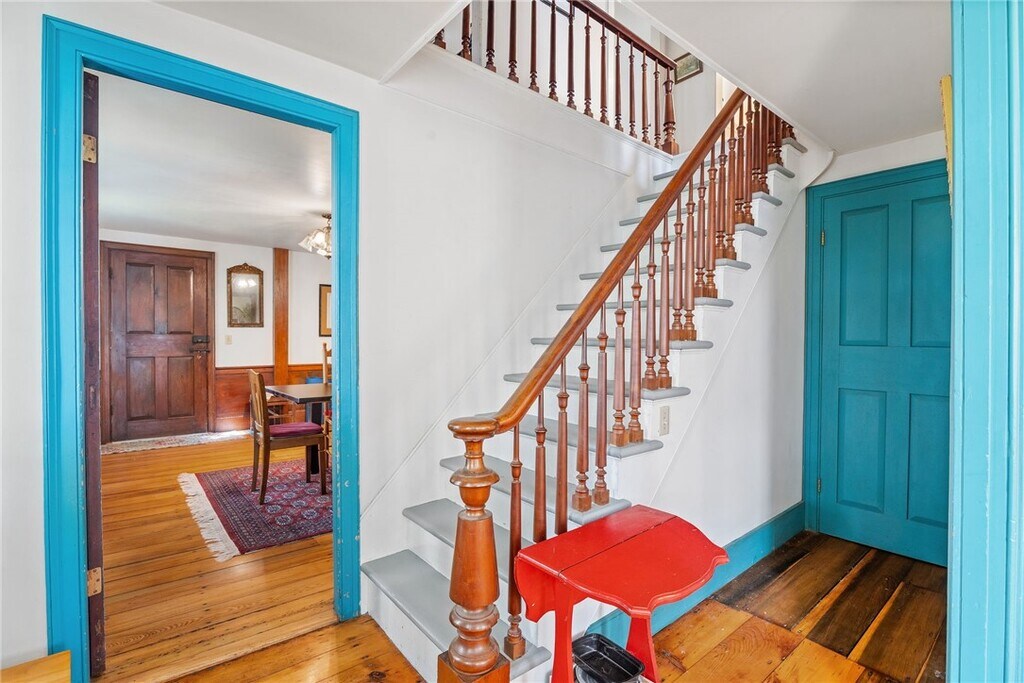 Nestled on a beautiful corner lot walking distance to the Black Diamond Trail,Taughannock Falls State Park and just a short commute to the Village of Trumansburg,this 2 acre parcel offers the perfect amount of space to make all your homesteading dreams come true. Enter the home through an attached 2 car garage into the welcoming entry way that opens up to the back patio overlooking the sprawling green lawn. Inside,the fully equipped kitchen offers plenty of counter and cabinet space with both a breakfast nook and a formal dining creating room to move and hosting gatherings easy. The main level also includes the convenience of a half bath,office or reading space,and a warm,inviting living room with a cozy gas fireplace and plenty of windows to let in natural light. Upstairs,you’ll find four comfortable bedrooms and a full bath,notice the entire home is accented by wide plank wood floors throughout. Outside the property features a chicken coop,garden area,and a barn for extra storage,giving you all the space you need for hobbies or homesteading.