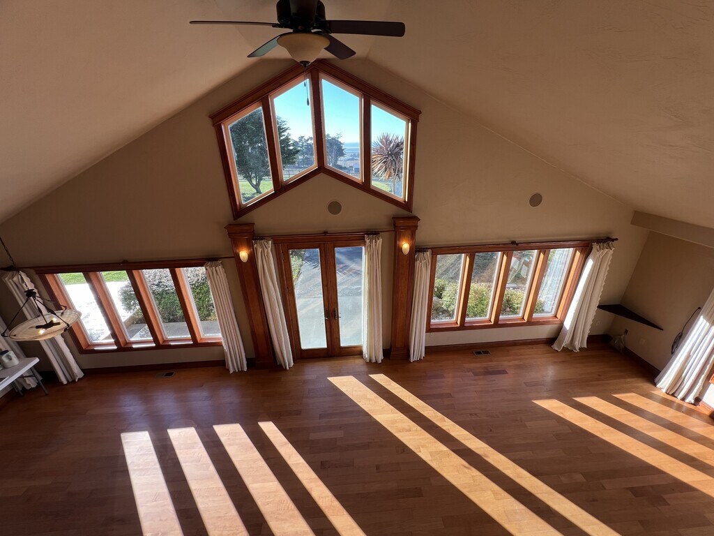 A must see to appreciate the 360 degree views that make this unique home amazing! High atop pasture land and overlooking The Pacific Ocean to the West and Humboldt Bay to the North. The home has three bedrooms, two downstairs and largest upstairs. All rooms have commanding views of the outdoors. Beautiful hardwood flooring downstairs. Wood burning stove as well as forced air. Laundry Room with washer and dryer included. Kitchen is well equipped and has a large full size pantry. 18 minutes South of Eureka, 9 minutes to College of the Redwoods and 20 minutes to Cal Poly Humboldt. Table Bluff County Park, South Jetty and the Hookton Slough Wildlife Refuge. Large circle driveway. Barn adjacent to home is for tenant use. Home sits on a shared private drive behind a security gate. Available May 1st Apply Now! at to schedule a showing. Tenant is responsible for PGandE, and Propane. One dog considered. Renters' Insurance required. $3500 for rent monthly. $3500 for security deposit. Owner cares for the surrounding landscaping needs and pays for Recycling/Garbage Frankie Kelly-Cardoso Casa Nova Realty Group McKinleyville Ca. BRE 01983268 Home is surrounded by working farm and pasture land. Located within a gated parcel shared with another residence.