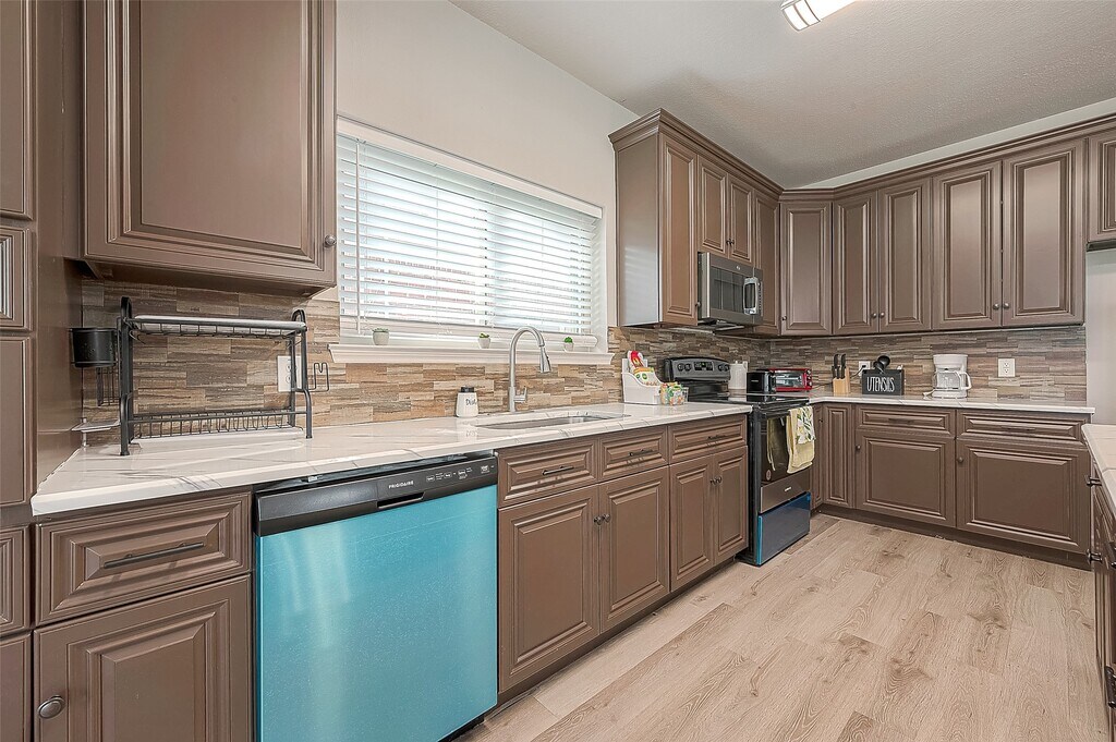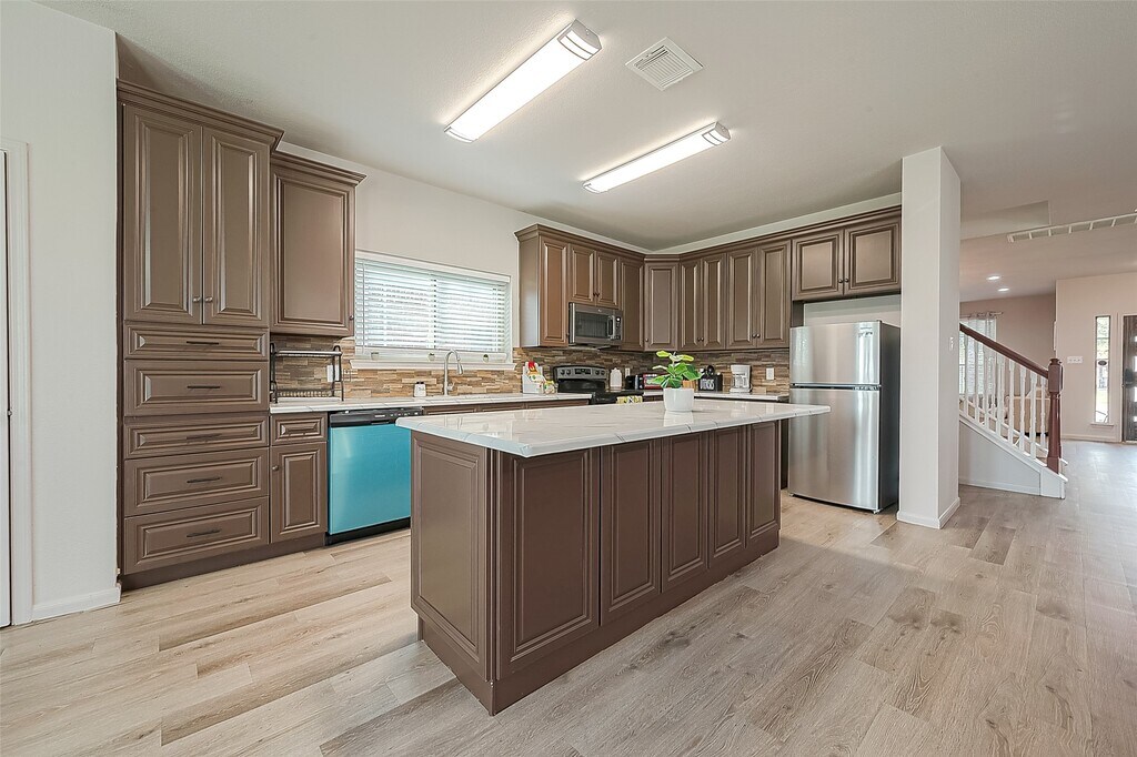 Welcome to Lakes of Bridgewater! Located on a quiet cul-de-sac with no back neighbors,this charming home offers the perfect mix of comfort,privacy,and functionality. The first floor features low-maintenance vinyl flooring and a spacious kitchen that opens to the living and breakfast areas,ideal for both daily living and entertaining.The primary bedroom is conveniently located downstairs,offering a private retreat,while the upstairs includes additional bedrooms and a flexible loft space,perfect for a game room,home office,or second living area. Step outside to a covered back patio,perfect for relaxing or hosting guests. The large backyard is a gardener’s dream,complete with fruit trees and a thriving organic garden grow your own produce right at home!. Just a short walk to top-rated Katy ISD schools. Section 8 welcome. Contact us today for your private showing! MLS# 92569830