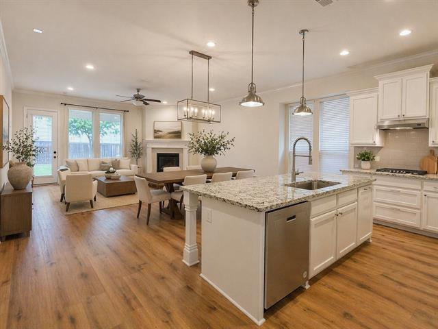 ABSOLUTELY STUNNING! Gorgeous new floors installed downstairs. Synthetic Turf throughout entire backyard. Since your HOA dues include front yard maintenance - No lawn mower required! Beautiful front stone accents & glass paneled Mahogany door. 3 car garage. Custom gated & landscaped sideyard. Energy Star 3.0 certified home in sought after Prosper ISD. Exquisite Chef's kitchen features white cabinets, granite counter tops, upgraded gas cooktop, upgraded pendant lights, & walk-in pantry. Large primary down with bay window, ensuite bathroom, oversized shower, dual sinks & huge walk-in closet. 5th bedroom down can be used as office~study with French doors. Walk-in closets in all bedrooms. 3 bedrooms & game room up plus J&J bath and hall bath. Corner gas fireplace. Mud bench~lockers at garage entry. Extended back covered patio with gas stub. Mustang Lakes offers clubhouse, fitness center, lakes, jogging paths, tennis courts & playgrounds.
