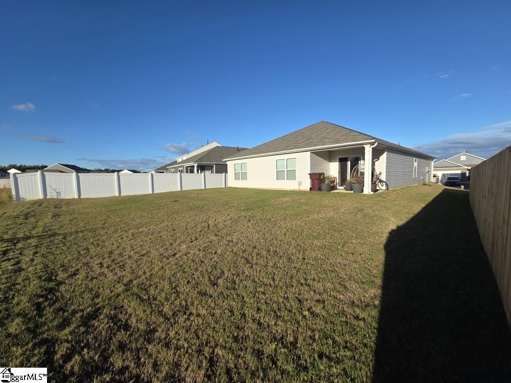 Built in 2024, this home is just over a year old and offers modern living all on one level. With four bedrooms, two full baths, and a two-car garage, it sits in the desirable Byrnes High School district. The Cali floor plan is designed for comfort and connection, featuring an open concept layout where the family room, dining space, and kitchen come together beautifully. The kitchen is the heart of the home with granite countertops, stainless steel appliances, a gas stove, a large pantry, and a center island perfect for both casual meals and entertaining. The primary suite is tucked away for privacy and includes a spacious walk-in closet, dual vanity sinks, and a walk-in shower. At the front of the home, two bedrooms share a full bathroom with a garden tub, while the fourth bedroom can easily serve as a guest room, office, or flex space. From the dining area, you can step out onto a covered porch, the perfect spot for morning coffee or a weekend cookout. This home is part of a community with a brand-new pool and cabana, making it easy to relax or spend time with neighbors. With its modern design, convenient layout, and neighborhood amenities, this rental is ready to welcome you home.