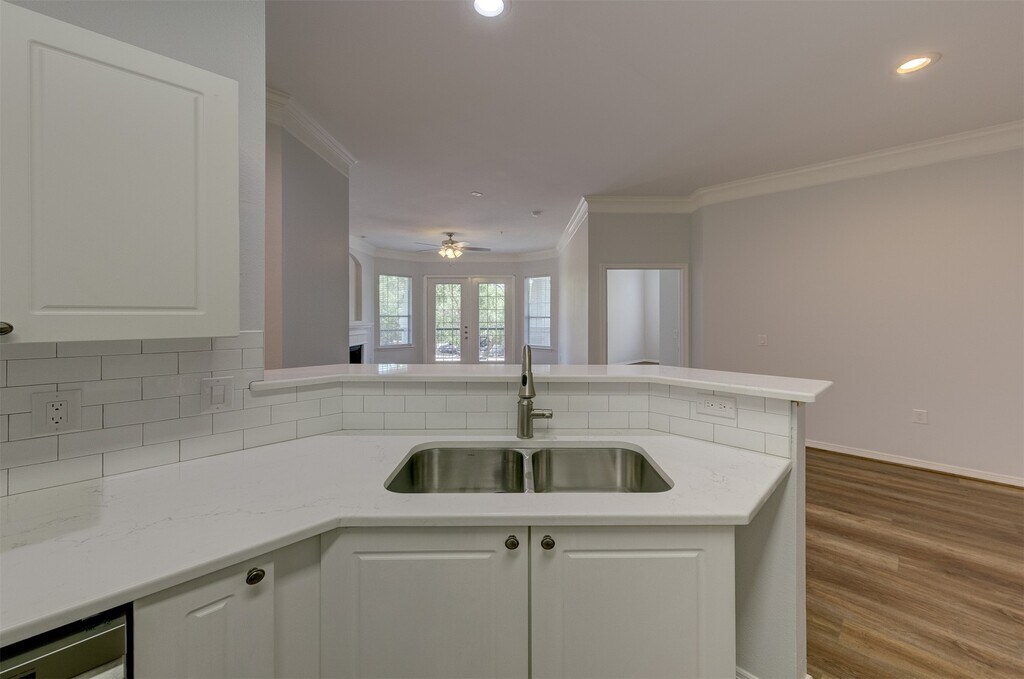 Walk into "WOW"! Over 30k of improvements,including: luxury vinyl Plank flooring,Quartz counter tops,Subway tile,Stainless appliances,Full size washer/dryer,2" Faux Wood blinds & trendy light fixtures! The bright den has tall ceilings,electric fireplace & french doors leading to a WRAP AROUND BALCONY. Relax in a large Primary bedroom w/spa-inspired bath & Texas sized walk-in closet. Study or work in the handy computer nook. Also,INCLUDES 1 CAR GARAGE & parking space,outside storage closet,pest control & valet trash pickup. Nestled in a desired location. Complex offers many amenities including: Basketball court,24/7 Fitness Center,2 pools/spa,Picnic & Grilling area,Billiards,Bark Park,Business center,Clubhouse,delivery lockers,& Boat/RV parking ($). If you need to leave your paradise,it's close to shopping,dining,& the bay! Individually owned condo is a rare find in the community! NO Pets. Note:$136/month community fee & $48/month H2O fee. MLS ID 48230978