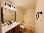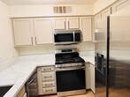 Experience the resort-style living in this beautiful 2-bedroom, 2-bathroom condo, located in a desirable gated community with access to a sparkling pool, clubhouse, and fitness center. The upgraded kitchen is with quartz countertops, a spacious basin sink, faucet, modern lighting, and stainless-steel appliances. The inviting living room features luxury vinyl plank flooring. Both generously sized bedrooms with ceiling fans, and ample closet space. Each bathroom has vanities, sinks, faucets, toilets, lighting fixtures, and mirrors for a modern, spa-like experience. Step outside to enjoy a charming, covered patio. Just 10 minutes from the Las Vegas Strip and close to shopping, dining, and transportation, this condo offers exceptional comfort and convenience. Lease includes water, Trash and sewer. Schedule for a showing appointment today.