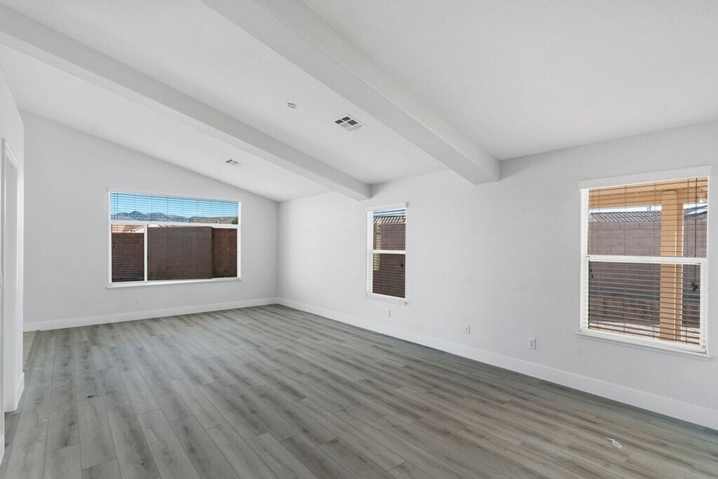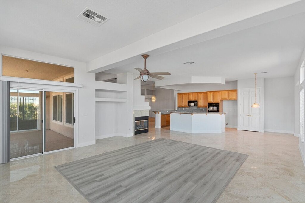 Check out this awesome 4 bed, 2.5 bath single-story home in the gated Seven Hills community! It's on a huge corner lot with a long driveway. Freshly remodeled with new paint and laminate floors, plus ceiling fans and cool accents throughout. You'll love the fireplace that connects the formal living room and family room. The kitchen is open with a wrap-around bar, breakfast nook, and pantry. The primary bedroom is super spacious with a giant walk-in closet and access to the back patio. The primary bath has tons of counter space, double sinks, a relaxing garden tub, and a separate shower with built-in seats. The other bedrooms are a good size too! Outside, there's plenty of room to chill with a paved backyard, covered patio, and low-maintenance landscaping. There's even an extra long covered patio on the side yard. Pool is not included. Tenants will not have access to the single car garage. Tenants pay an additional $40 to Premier Property Mgmt a month for trash and sewer services.