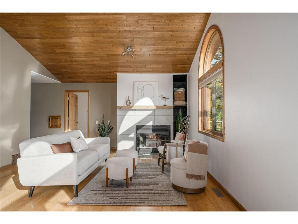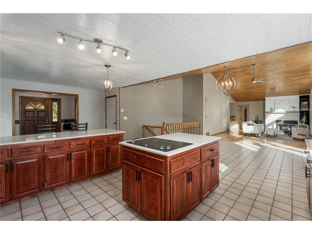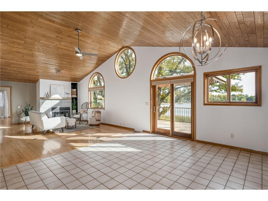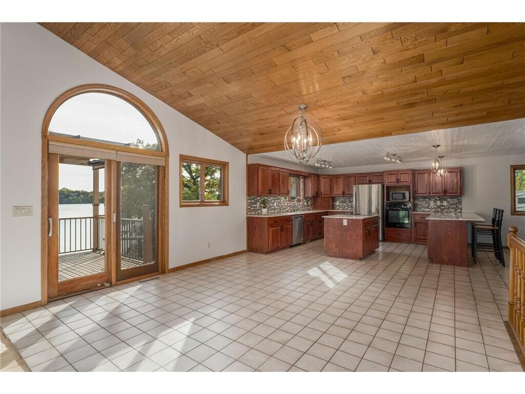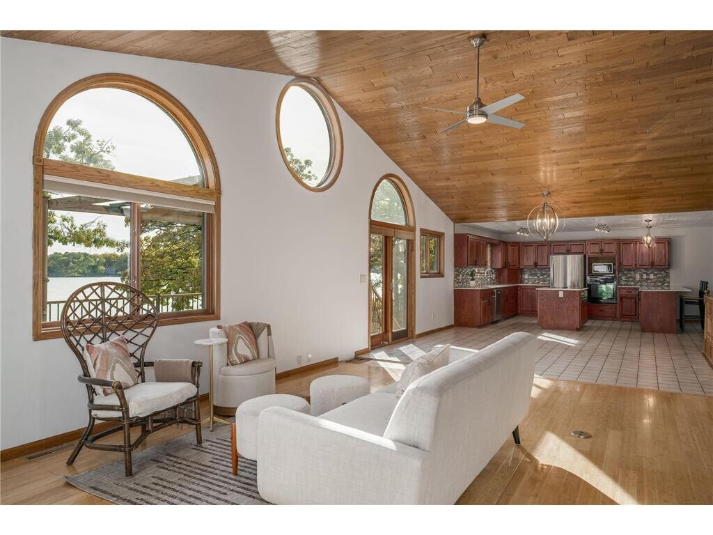 Situated on 1.16 acres and spanning 200' of south facing lake shore, this walkout rambler is a gem. Wide open floor plan with stunning lake views. Lots of counter space in the open concept kitchen/dining/living room. Quartz countertops, refinished cabinets and gorgeous tile backsplash. Main floor has newer tiled handicapped accessible shower. Master bedroom features sliding glass door to access your deck overlooking the lake! Walk-in closet, and full bath with separate soaker tub. Lower level features a huge family room and walks out to the lake where you have a dock and a boathouse, two large lower level bedrooms and a 3/4 bath. Separate entrance from garage to lower level. Ready to move in and enjoy. Also listed for sale.