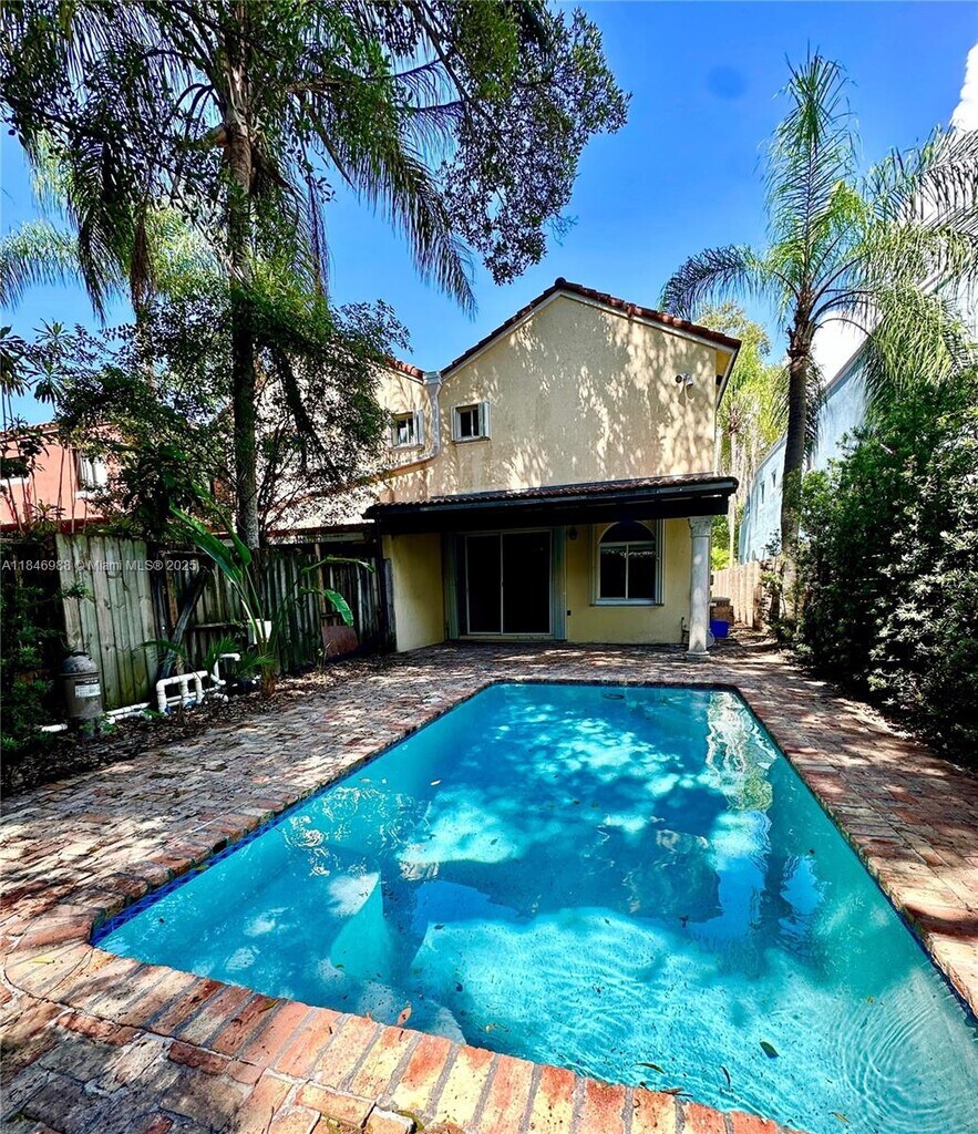 Freshly painted and spruced up 3-bedroom, 2.5-bath townhome with a private pool in the heart of Center Grove is a must-see! Located near CocoWalk, top-rated schools, lush parks, and Biscayne Bay, the home offers the perfect blend of style and convenience. Featuring marble and wood floors, the open living space flows seamlessly into a spacious kitchen with stainless steel appliances and a gas range. The light-filled family room opens to a covered porch and a private backyard oasis with pool. Upstairs, you'll find two well-sized bedrooms and a generous primary suite with walk-in closet and private terrace. The property is fully fenced with an electric gate and includes a one-car garage. Location, location!!