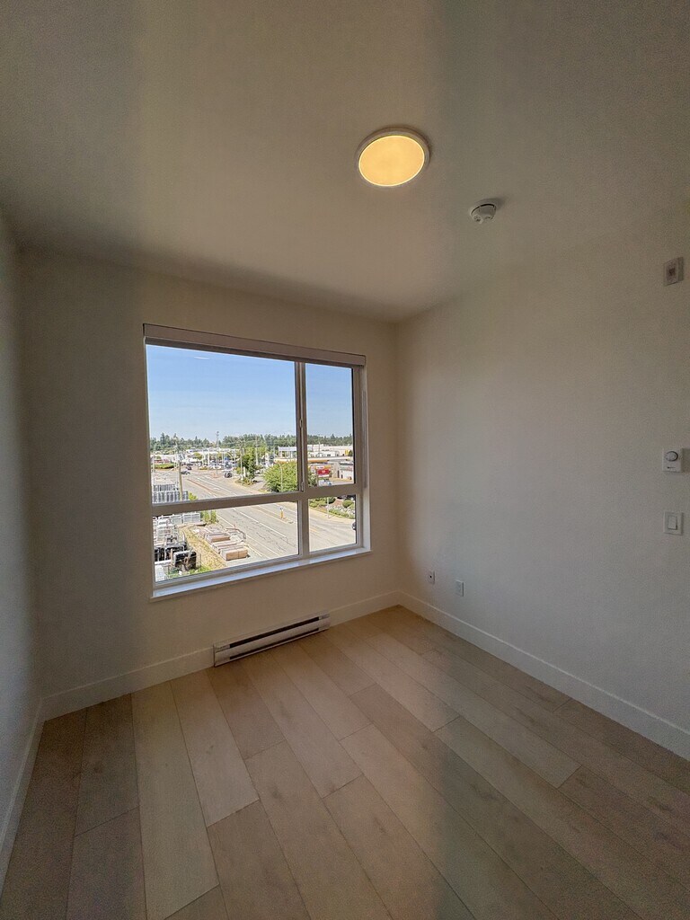 Brand new 2 bed 2 bath corner condo on the 5th floor. New Highstreet complex on Cardinal Ave. Steps from High street mall and Hwy 1 & Mnt. Lehman exit. 1 year lease. Beautiful unit with Stainless steel appliances (Smart fridge, Gas stove, Microwave, dishwasher). Open concept living room and kitchen with a large island and tons of cabinet space. Deck off the kitchen with North West views. Primary bedroom has a walk in closet and en-suite bathroom. 2nd bedroom has a window and a closet. In-suite washer/dryer. Storage room. 1 parking spot underground. Electric heat, No A/C. No Pets. No Smoking/vaping. Access to: 2 level amenity building, fitness center, designated virtual meeting rooms, indoor kids play area for year round use, 2 fully equipped entertaining kitchens and lounges, expansive rooftop patio with outdoor fireplace. For more information: Call Christine Hopes at or send an email to .