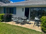 Welcome to your perfect winter getaway in Florida. This tastefully furnished cottage is located just steps from the community pool. Master bedroom features a queen size bed. Second bedroom features two full beds. Kitchen and bathrooms are updated. Indoor dining is a high top, and bar chairs. Outdoor dining is large table which seats 6. Back patio enjoyment is complete with a grill.This is your base for fine dining, shopping, golf, fishing, tennis, arts, theater and all that Florida offers. Rentals shorter than 6 months and a day are subject to 13% tourist tax