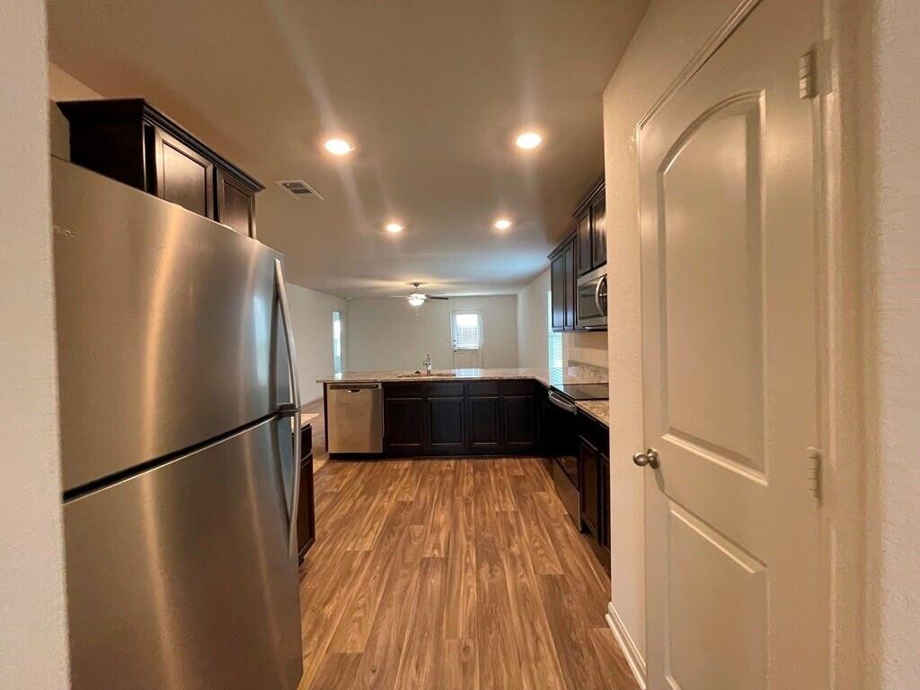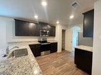 Great one story home available in the Stonebridge Crossing subdivision. This LGI build comes with modern vinyl plank and carpeting. The kitchen cabinets are a dark wood that looks great with the granite countertops and stainless steel appliances. Notice the recessed lighting and hallway arches.